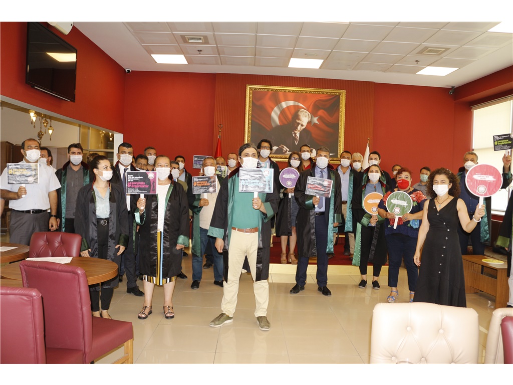 “Her fırsatta boğazlanan avukatlar nefes alamazsa biliniz ki, bu ülke de nefes alamaz. Nefessiz baro, entübe toplum demektir. İşte bu yüzden 19 Mayıs’ta ve 1Haziran’da TBB ve barolar olarak yayımladığımız ortak bildiride vurguladığımız gibi; çoklu baro, alternatif baro, barolara üye olma zorunluluğunun kaldırılması konularının bir daha gündeme gelmemek üzere kaldırılmasını, ülke olarak daha sağlıklı günlere kavuştuğumuzda, baroların da görüşleri alınarak, avukatlık mesleğinin ve toplumun çıkarlarına yönelik daha demokratik bir Avukatlık Kanunu hazırlanmasını bugün burada bir kez daha hatırlatıyoruz. Cumhuriyetin, demokrasinin, hukuk devletinin, laikliğin ve hak arama özgürlüğünün savunucuları; hiçbir ayrım gözetmeksizin haksızlığın karşısında yer alan ve evrensel hukuk ilkelerini kendine varlık sebebi yapan baroların teslim olmasını asla beklemeyin. En zor koşullarda bile, herkes için yılmadan umudu savunmaya devam edeceğiz.”