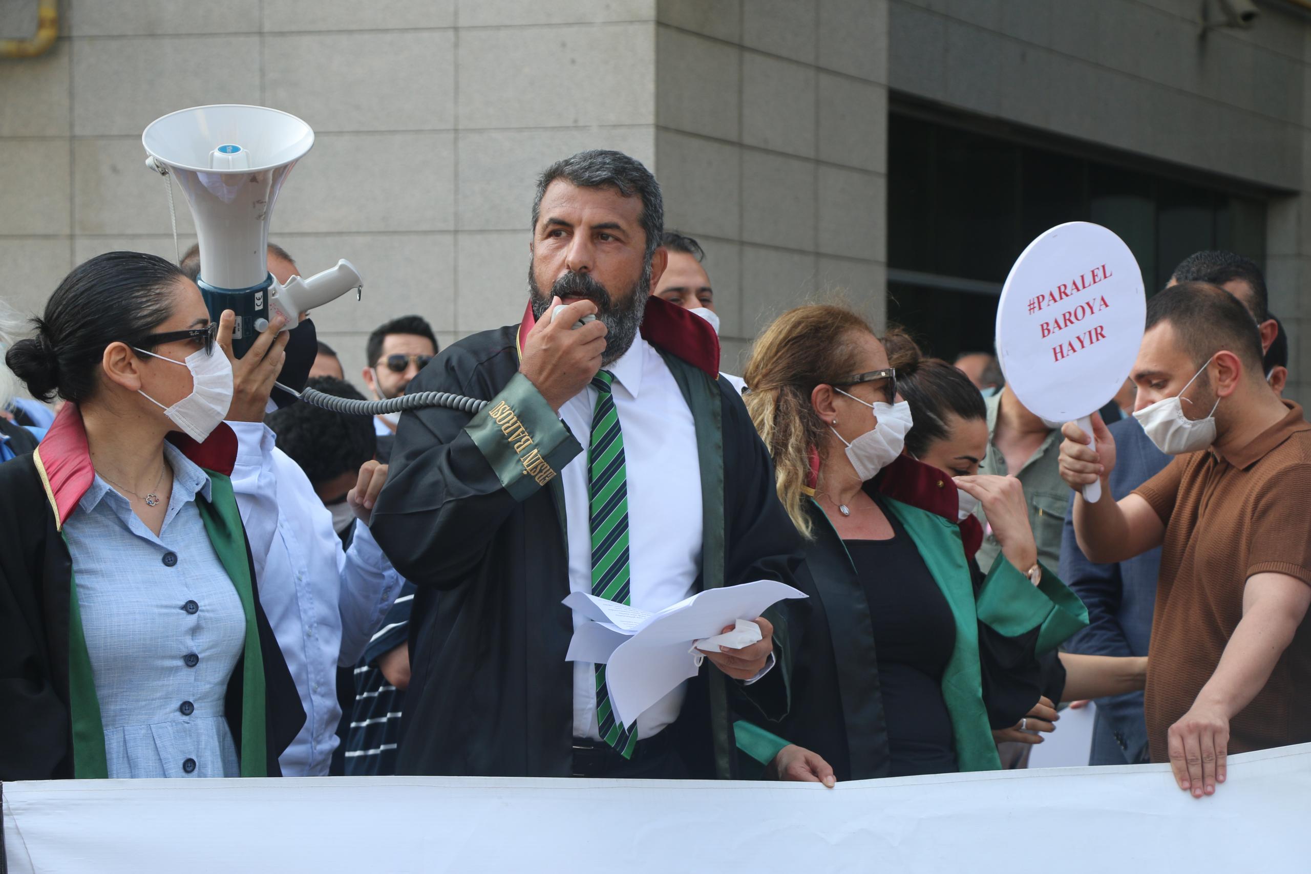 Mersin Adliyesi önünde bir araya gelen avukatlar adına konuşan, Baro Başkanı Bilgin Yeşilboğaz, yaptıkları yürüyüşe ve sonrasında Meclis önündeki “Adalet nöbetine” değinerek, iktidarın ve Meclis Başkanlığı’nın hiçbir şekilde kendileriyle iletişim içinde olmadıklarını ve verdikleri dilekçelere de cevap alamadıklarını belirtti.