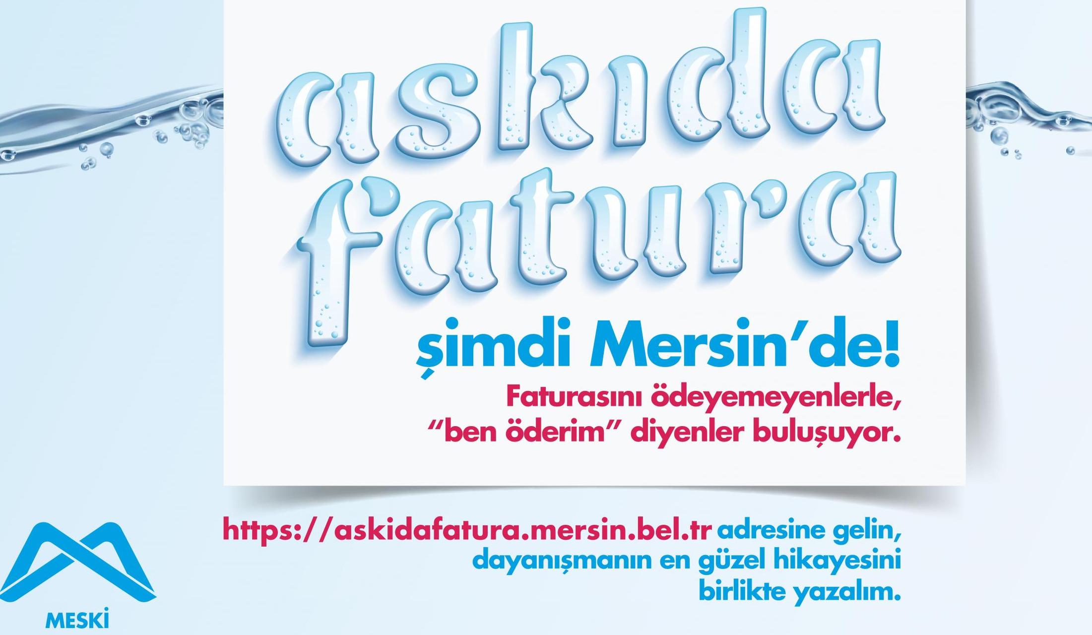 İstanbul ve Ankara’nın ardından Mersin Büyükşehir Belediyesi su faturalarını ödeyemeyen yurttaşlar için “askıda fatura” kampanyası başlatmıştı. Kampanya kapsamında bugüne kadar askıdan alınan fatura sayısı toplam 2 bin 395’e ulaşırken, askıda bekleyen fatura sayısı ise 86 bin 934 olarak gerçekleşti.