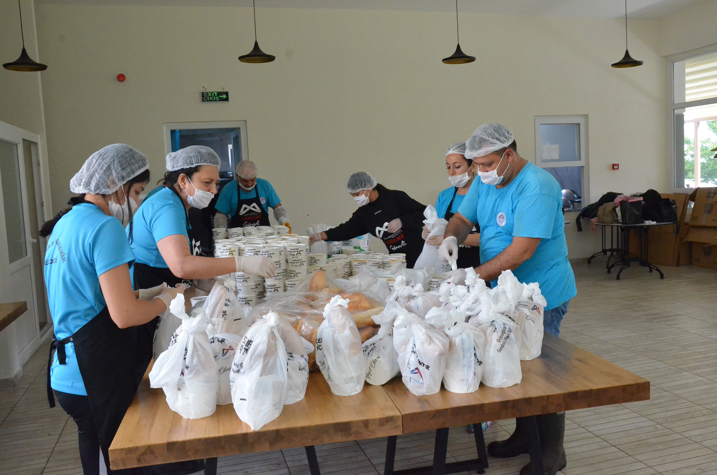 Ocaklarda pişen yemekleri paketlerken hep bir ağızdan şarkılar ve türküler söyleyen Büyükşehir Belediyesi emekçileri, zorlu süreçte ihtiyaç sahibi yurttaşların sofralarına sıcak bir yemek ulaştırabilmenin de mutluluğunu yaşıyor.