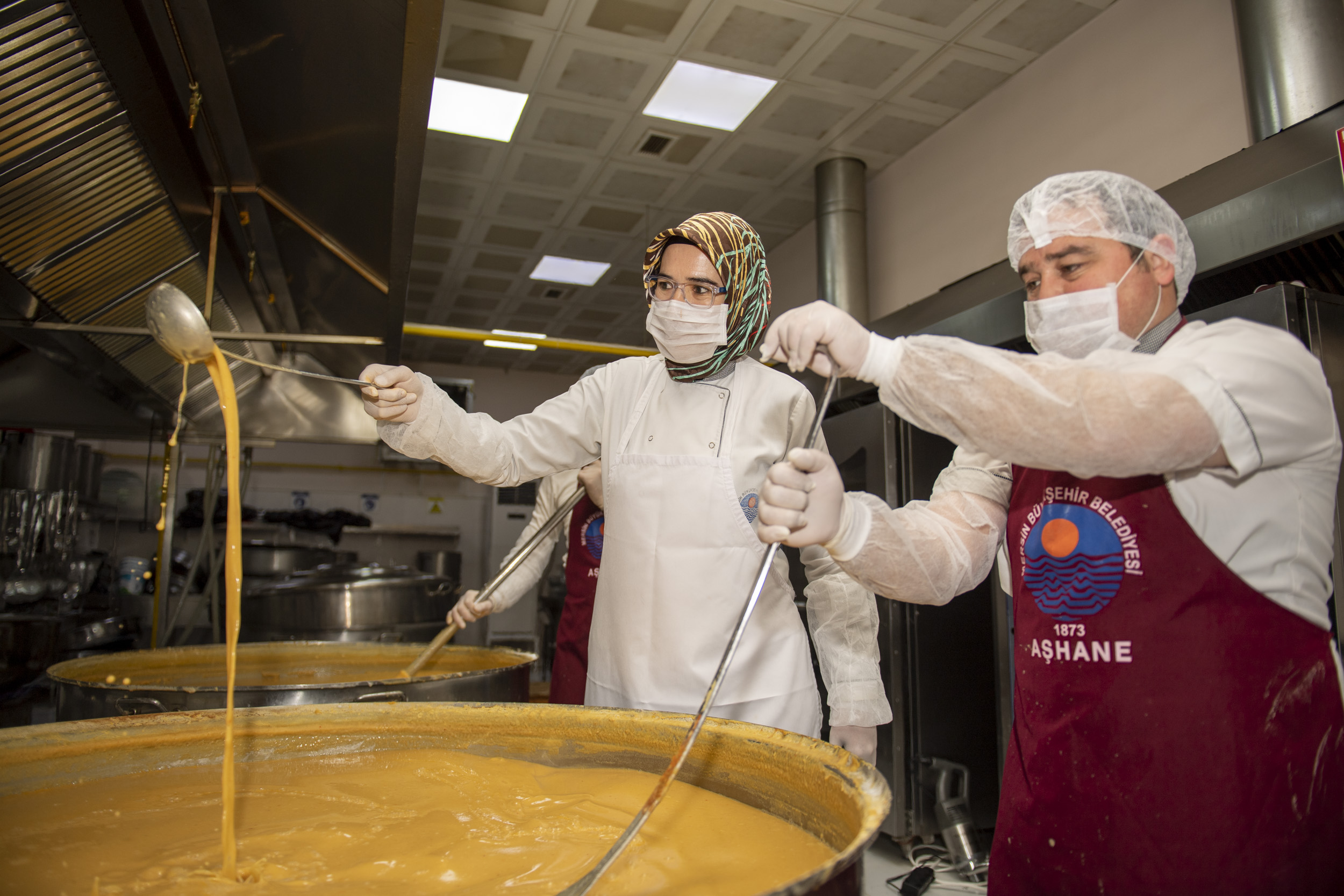 “-Kendi atölyelerimizde maske, sağlık çalışanları için siperlik maske ve MESKİ laboratuvarında dezenfektan üretiyoruz.