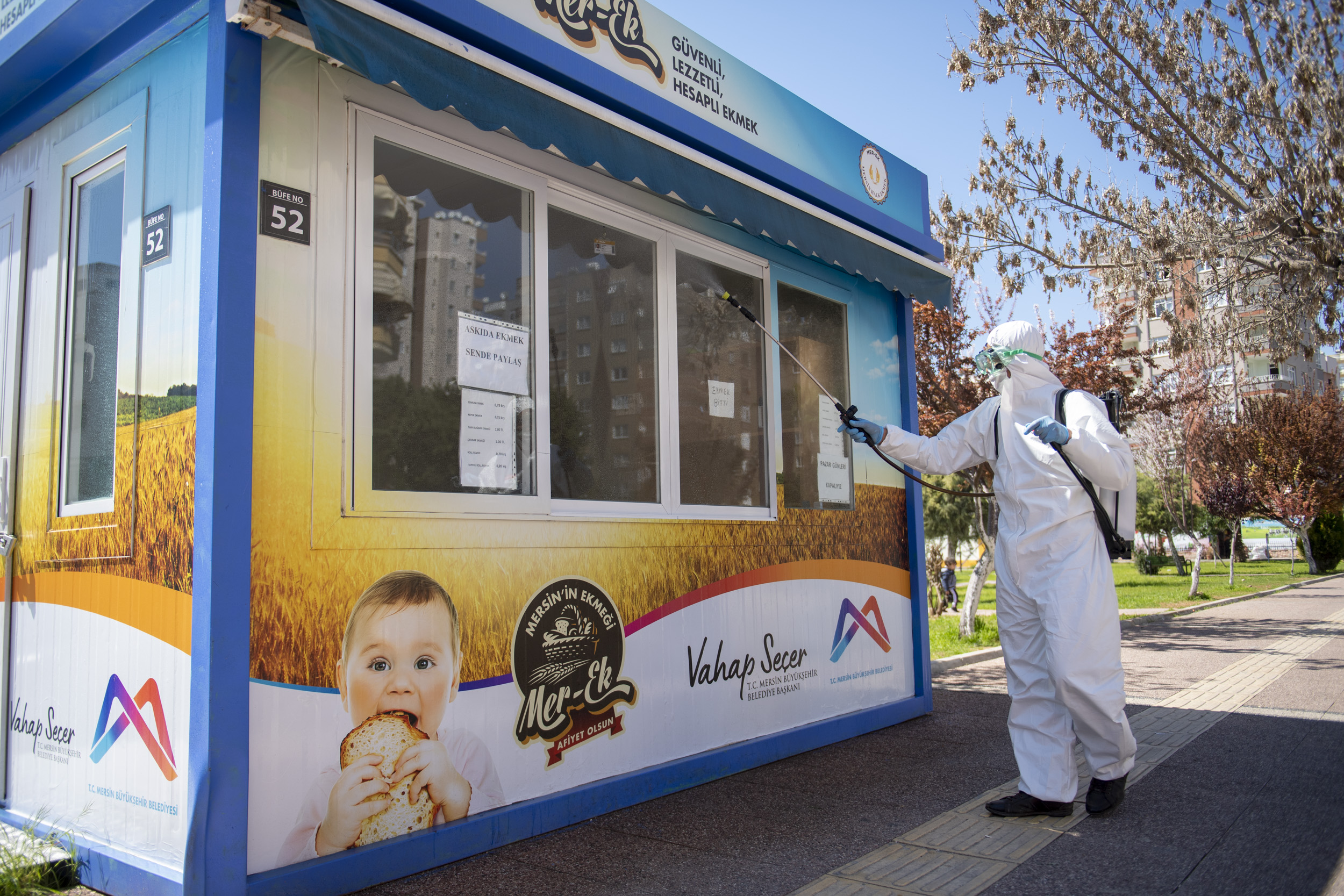 “Zorunlu yapılması gereken işler dışında, diğer çalışmaları durdurduk. Personel dezenfeksiyon, ilaçlama, sosyal yardım gibi korona ile mücadele alanlarına yönlendirildi. Rutin olarak dezenfeksiyon işlemlerine devam ediyoruz. Düzenli olarak her sefer arasında otobüslerimiz temizleniyor ve dezenfeksiyon işlemine tabi tutuluyor. Belediye otobüslerinde yolcu taşıma kapasitesini sosyal mesafeyi koruyacak şekilde yeniden düzenledik. Koltuklar arasında sarı uyarı bantları çekildi. Dezenfektan kiti konuldu. Zabıta ekiplerimiz toplu taşıma araçları, marketler, fırınlar gibi tüm alanlarda etkin denetimlerini sürdürüyor. Çöplerden evsel atık toplayan yurttaşlarımızın bu süreçte işlerine ara vermesi için diğer kamu kurumlarıyla gerekli girişimlerde bulunduk. Onlara gıda ve yemek yardımı yapıyoruz. Yaş meyve ve sebze üretim merkezi olan ilimizdeki hallerimizde hijyene en üst seviyede önem veriyoruz. Gerekli önlemleri aldık ve denetimleri yapıyoruz. Sokak hayvanları için beslenme odakları ve diğer alanlara mama ve su bırakıyoruz. Veterinerlik hizmetlerimizi de devam ettiriyoruz. Tüm mecralarda, sosyal medya, bilboardlar, otobüs arkaları, yazılı görsel ve işitsel basında halkın bilinçlenmesi maksadıyla korona ile mücadeleyle ilgili yayınlar yapılıyor. Zorlu bir süreçten geçiyoruz. Bu süreci hiç şüphem yok ki, birlik, beraberlik ve dayanışma içerisinde aşacağız. Lütfen, uyarıları dikkate alın, sağlığımız için evde kalın.”