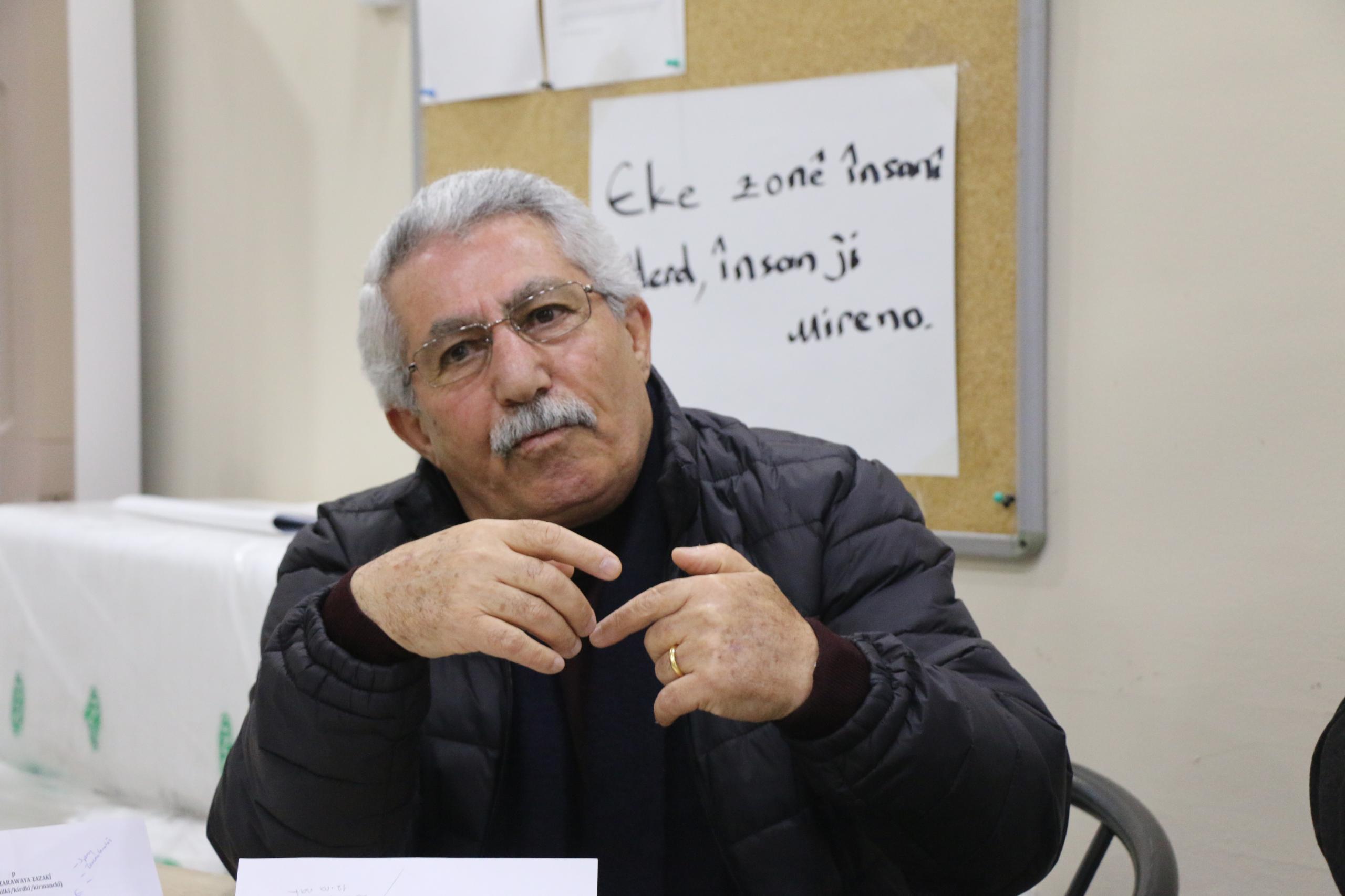 “Bizim adetlerimiz ve töremiz, gülbenglerimiz anadilimizle yapılırsa bizler o kadar mutlu oluruz, tadını alırız. Anadilimiz olan Kırmancki zor zamanlar geçiriyor. Buna karşı bugünden itibaren ana dilimizi evde konuşmaktan utanmayalım. Bildiğimiz iki kelime bile olsa konuşalım. Çünkü bizim kamilliğimiz dilimizden meydana geliyor. Yıllardır inancımızı gelenek ve göreneklerimizi kendi ana dilimde gerine getirdik, Türkçeyle değil. Bu dil anamızdan, dedemizden kaldı onu konuşarak yaşatalım. Dilimiz üzerine çalışmalara yoğunlaşmalıyız ki dilimiz kaybolmasın. Çocuklarımızın okuyup gelişebilmesi için eğitimler olmalı. Bu da demokrasi sorununun bir parçasıdır.”