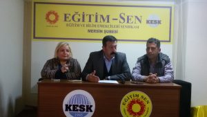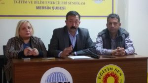 PİRHA- Referanduma sayılı günler kala birbiri ardına açıklamalar gelmeye devam ediyor. Eğitim-Sen Mersin Şube Başkanı Sinan Muşlu yaptığı açıklamada “Eğitimin gerçek anlamda demokratik, bilimsel ve laik bir içerikte olması, herkese eşit ve parasız eğitim hakkı için tüm halkımızı, velilerimizi, bütün eğitim ve bilim emekçilerini 16 Nisan referandumunda güçlü bir şekilde ‘HAYIR’ oyu kullanmaya davet ediyoruz” dedi.