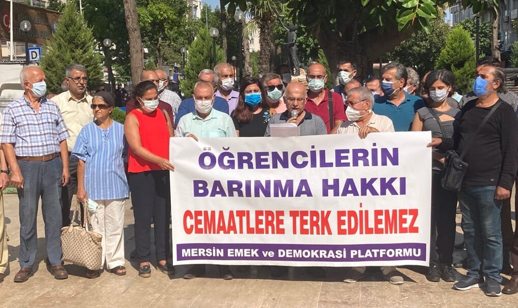 Mersin Emek ve Demokrasi Platformu, üniversite öğrencilerinin yurt sorununa dikkat çekerek “Barınma sorunu cemaatlere terk edilemez” başlığıyla bir açıklama yaptı.