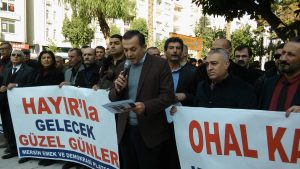 Ardından konuşan CHP İl başkanı Abdullah Özyiğit ise mecliste yaşananlara dikkat çekerek referandum da güçlü bir “Hayır”ın çıkacağını belirtti.