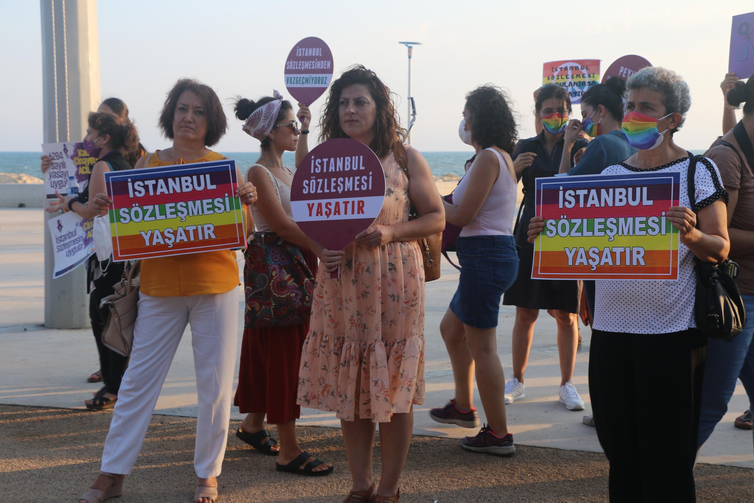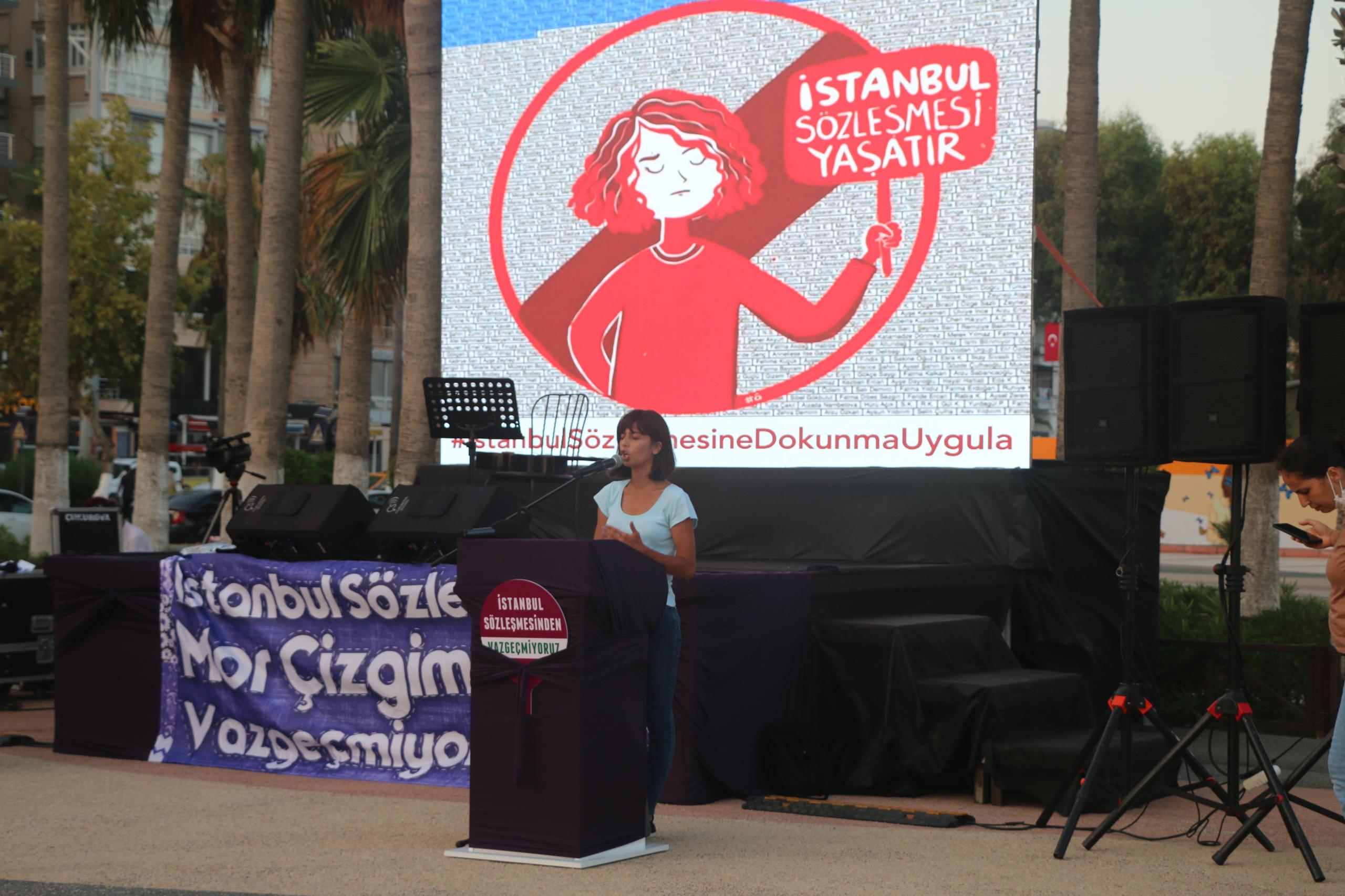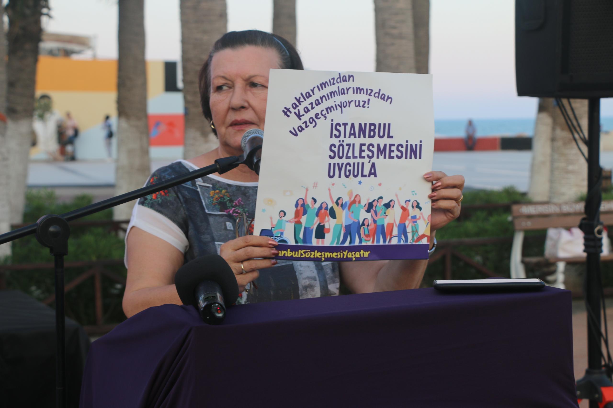 Mersin Kadın Platformu, iktidar tarafından çekilmesi tartışılan İstanbul Sözleşmesine sahip çıkmak için Özgecan Alan Meydanında forum düzenledi.