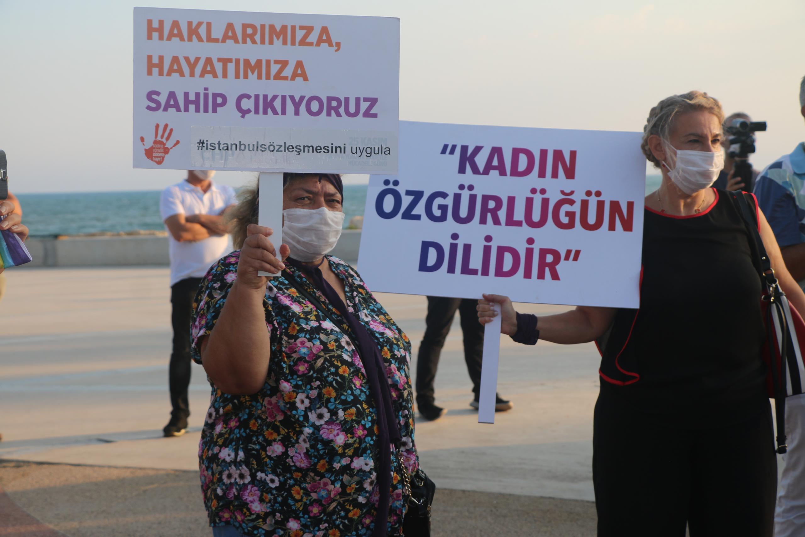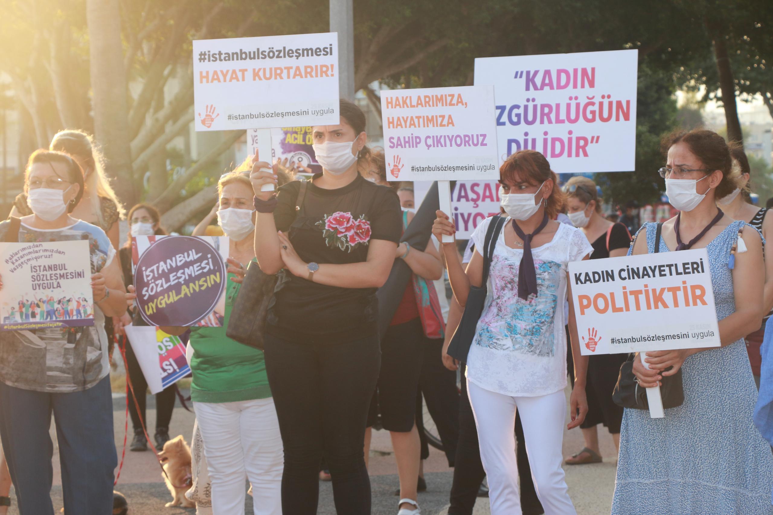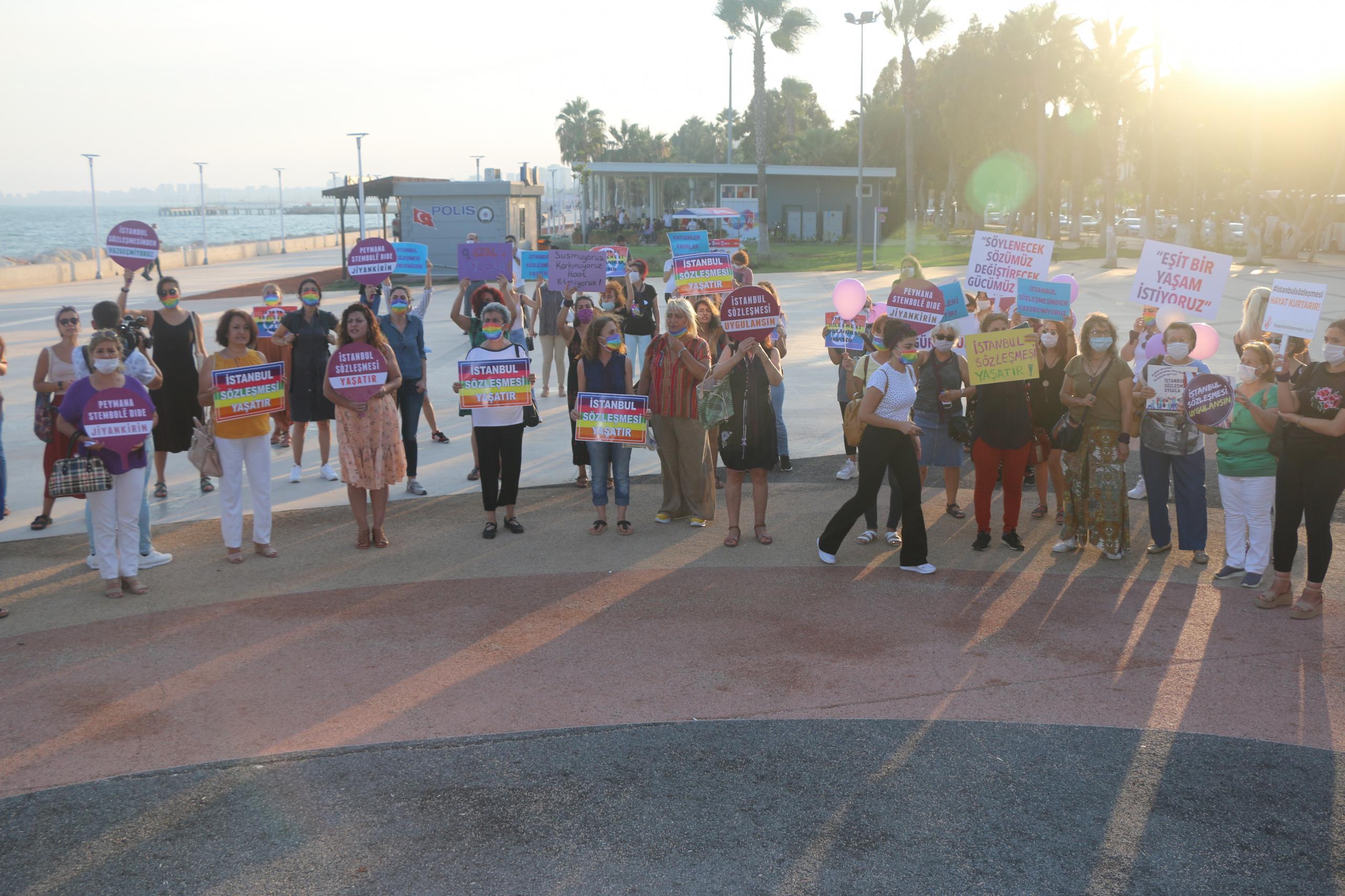 Mersin Kadın Platformu, iktidar tarafından çekilmesi tartışılan İstanbul Sözleşmesine sahip çıkmak için Özgecan Alan Meydanında forum düzenledi.