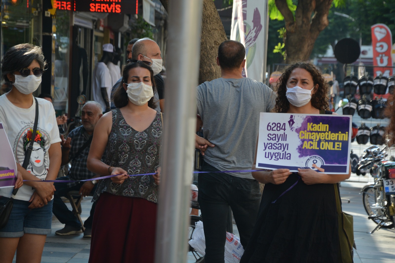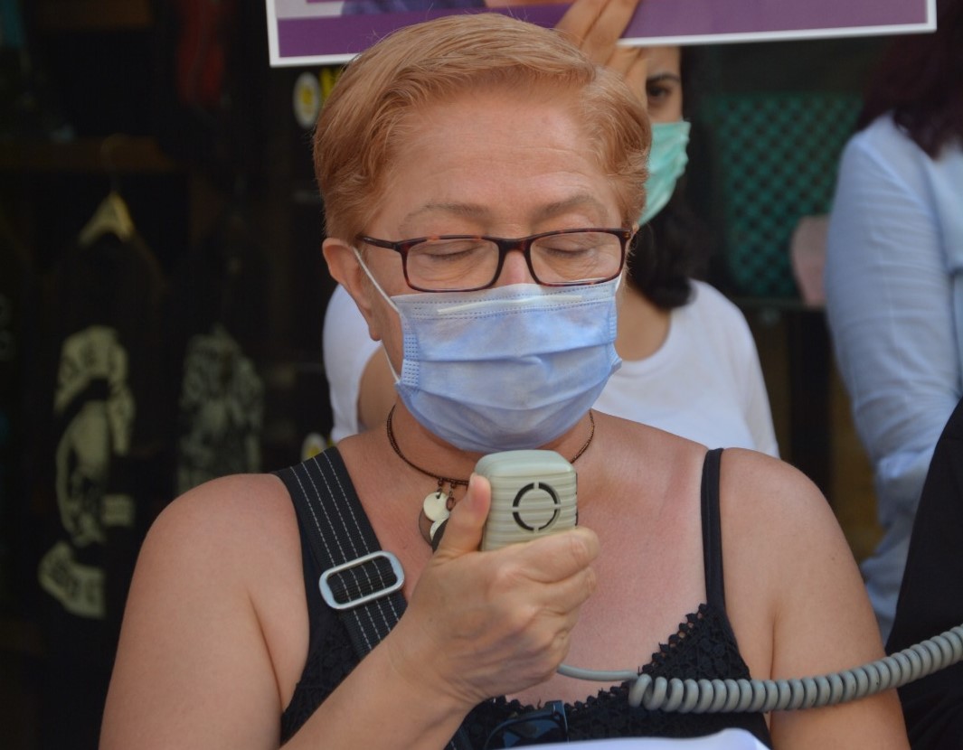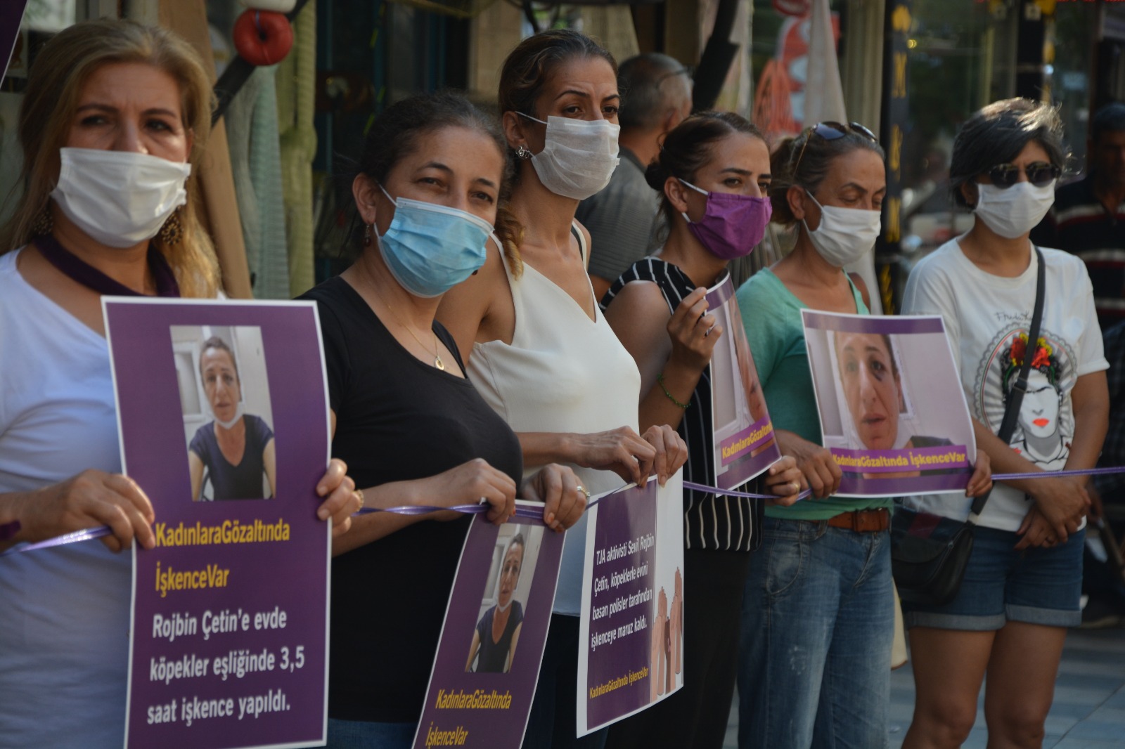 Mersin Kadın Platformu üyeleri, Halkların Demokratik Partisi (HDP) Mersin İl Örgütü binası önünde yaptıkları basın açıklamasıyla HDP Demokratik Yerel Yönetimler Kurulu üyesi Sevil Rojbin Çetin’e dönük köpekli işkenceyi protesto etti.