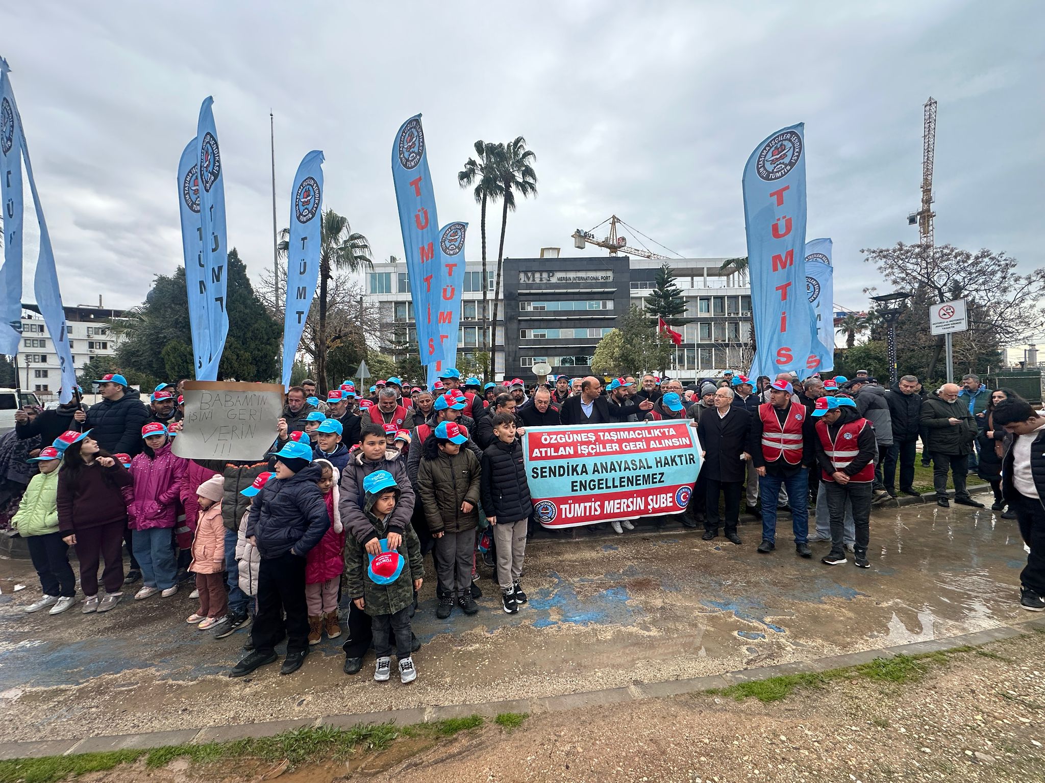 Bu gelişmenin ardından, Tüm Taşıma İşçileri (TÜMTİS) Mersin Şubesi, işçiler ve işçilerin aileleri MIP (Mersin International Port) binası önünde bir araya gelerek işten çıkarmaları protesto etti.