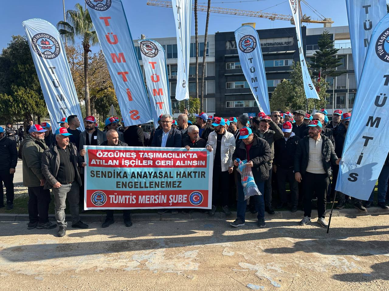 Mersin Limanı’nda yükleme ve boşaltma işlerinde çalışan Özgüneş Taşımacılık işçileri, ağır çalışma koşulları nedeniyle Tüm Taşıma İşçileri Sendikası’na (TÜMTİS) üye oldu. Sendika, iş yerinde toplu iş sözleşmesi yapabilmek için gerekli çoğunluğu 2022 yılında sağladı. İşverenin yaptığı itirazlar yargı süreçlerinden geçerken, Çalışma ve Sosyal Güvenlik Bakanlığı tarafından 22 Ekim 2025 tarihinde sendikaya toplu iş sözleşmesi yetkisi verildi.