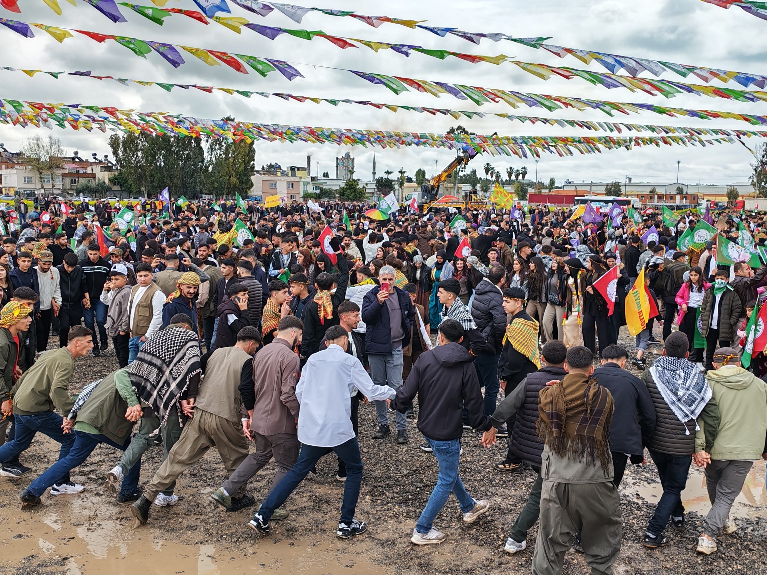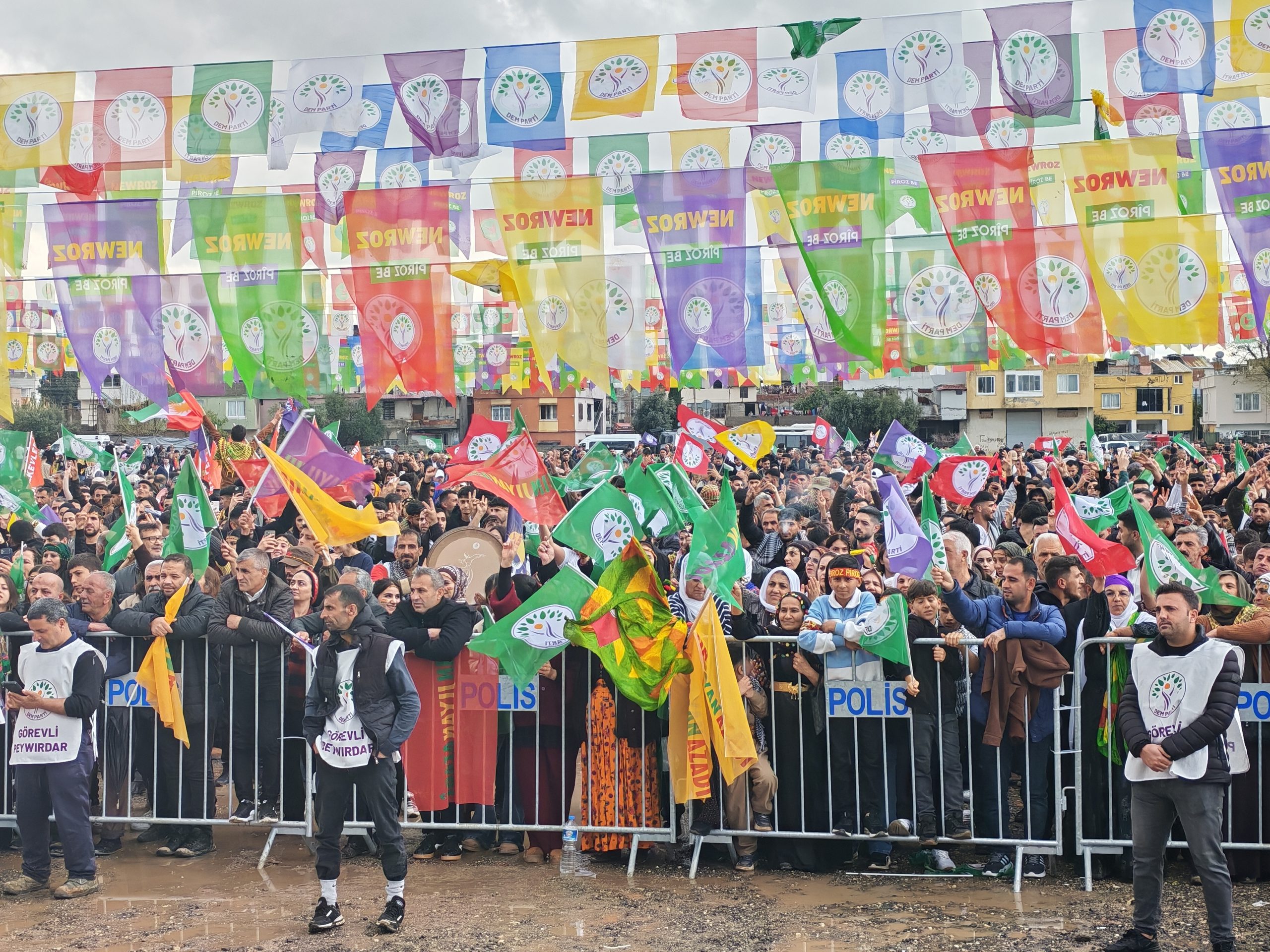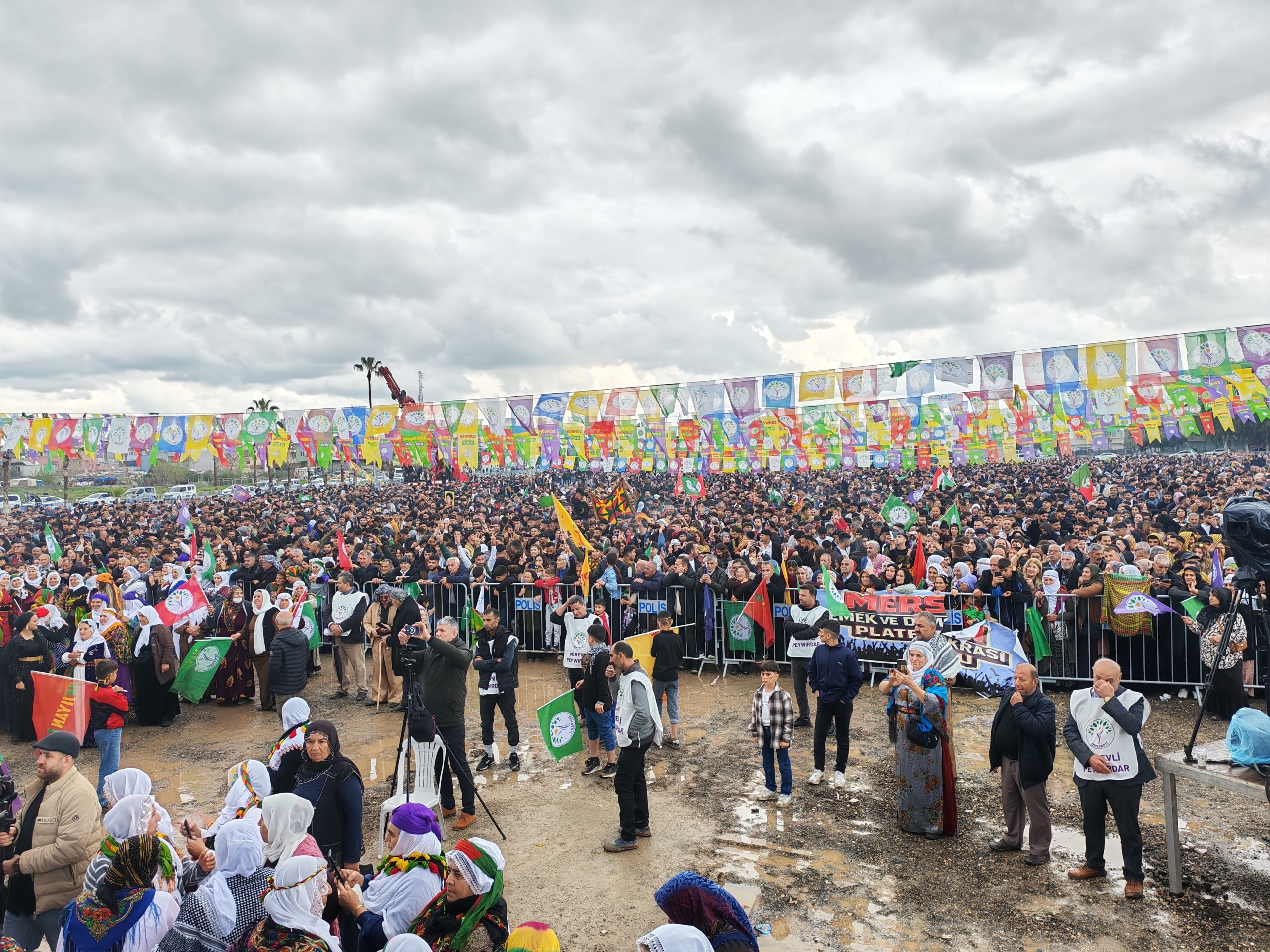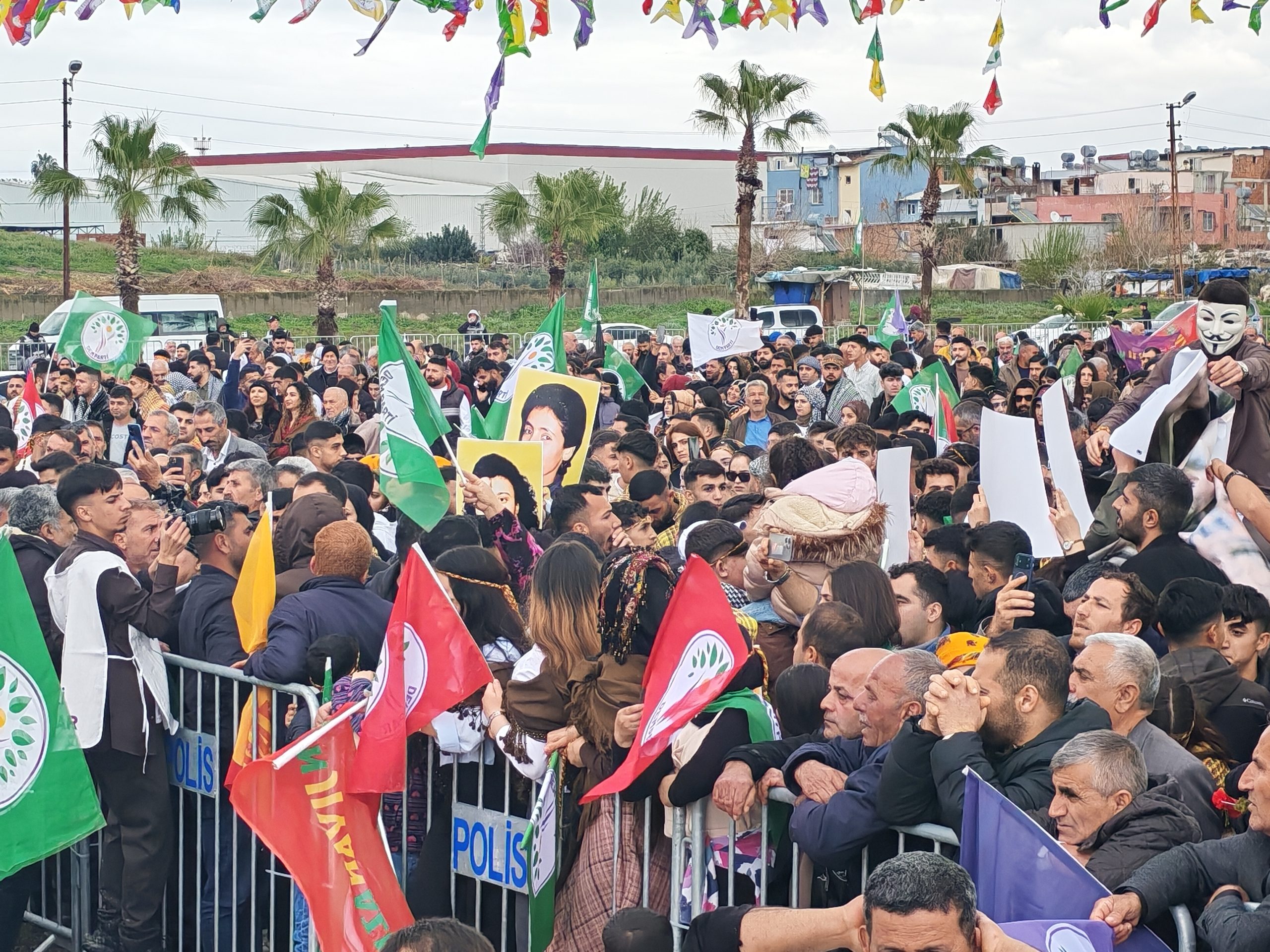 PİRHA- Mersin Newroz kutlaması için binlerce yurttaş bir araya geldi. Yağışlı havaya rağmen coşkunun eksik olmadığı kutlamada konuşan DEM Parti Grup Başkanvekili Gülistan Kılıç Koçyiğit, Barış ve Demokratik Toplum Süreci’ne değinerek, “Orta Doğu yine yangın yerine döndürülmeye çalışılıyor. Meclisin bir an önce bu anlamda adım atması gerekiyor. Bekleyecek zaman yok!” dedi.