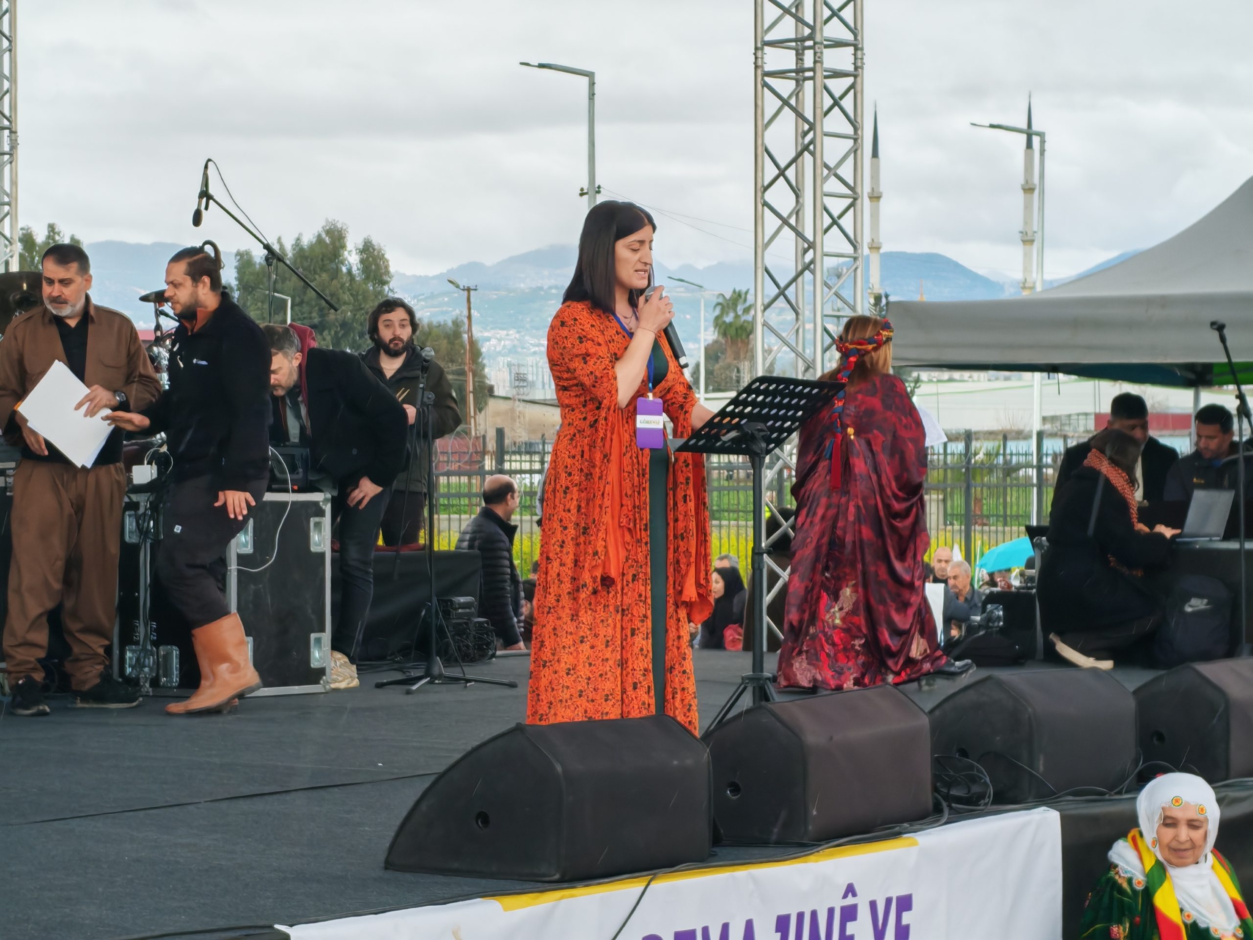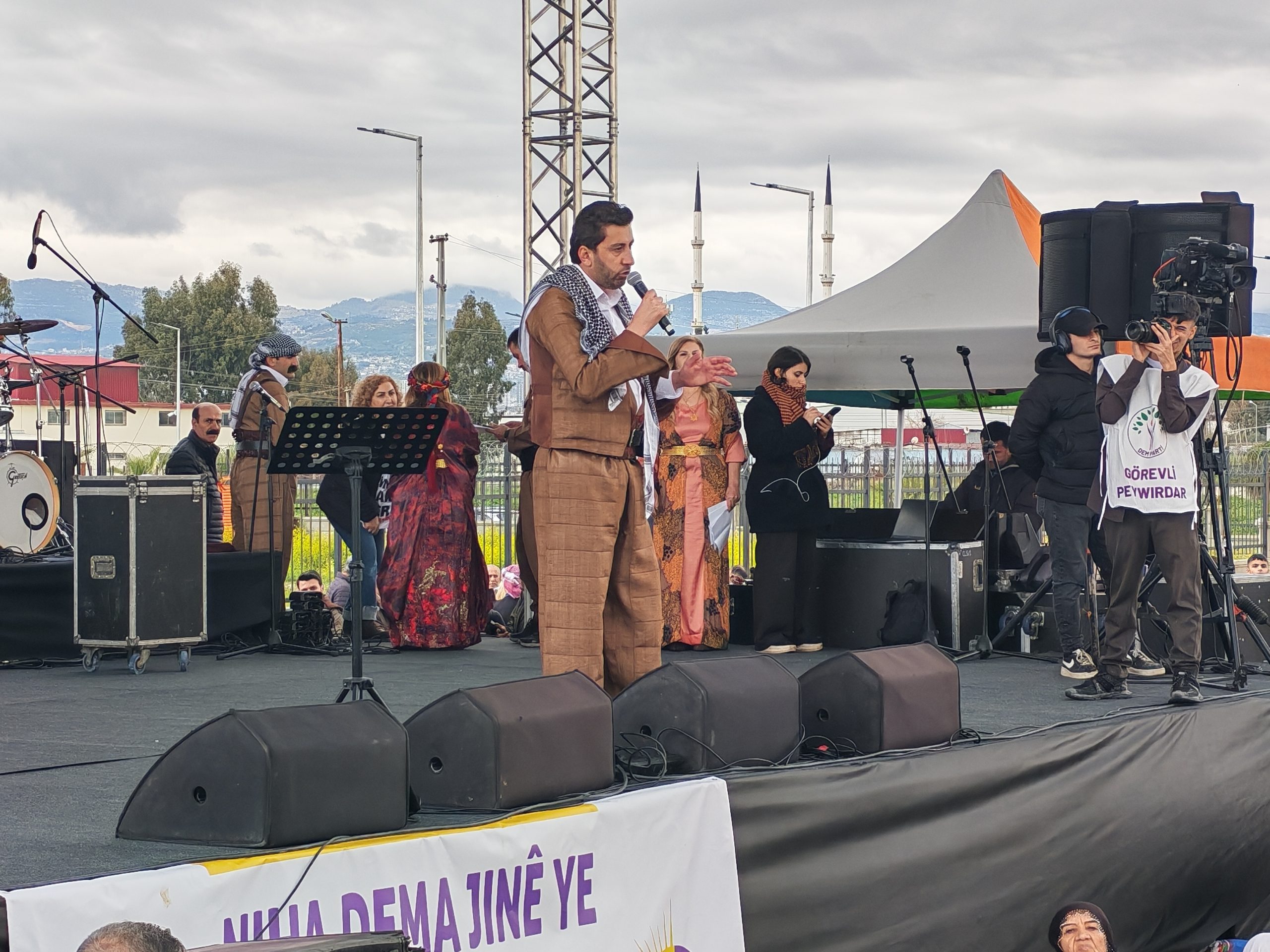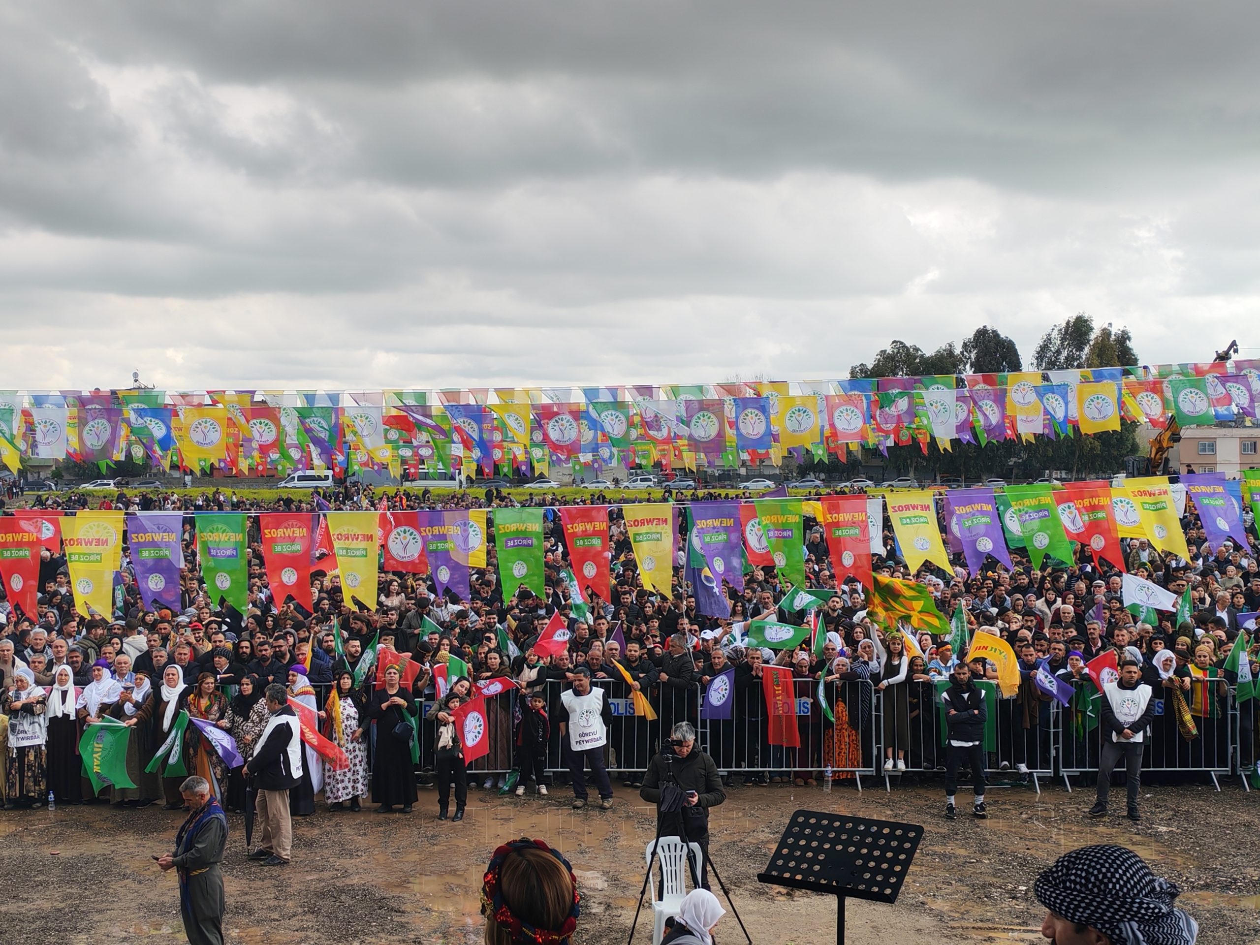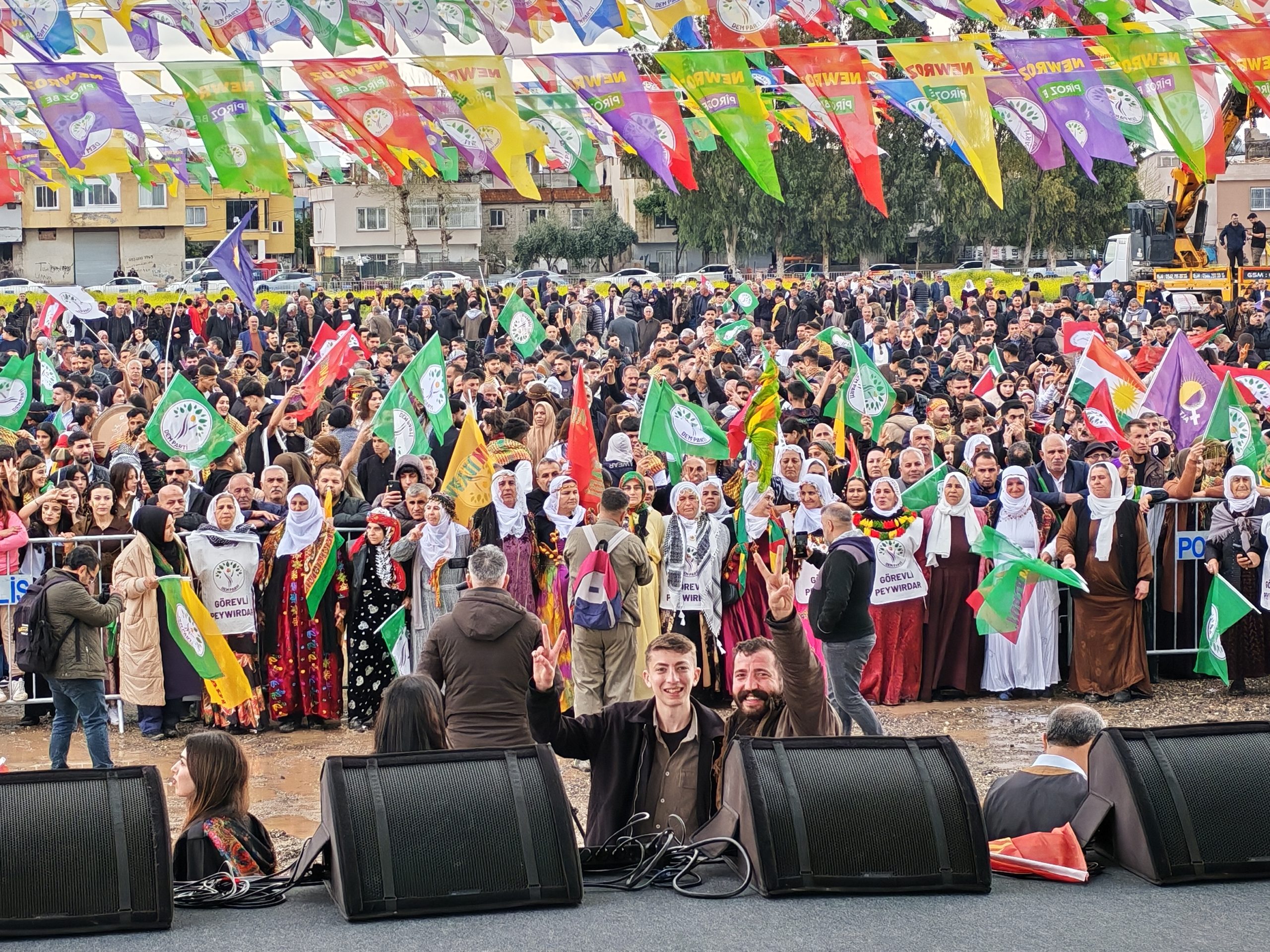 PİRHA- Mersin Newroz kutlaması için binlerce yurttaş bir araya geldi. Yağışlı havaya rağmen coşkunun eksik olmadığı kutlamada konuşan DEM Parti Grup Başkanvekili Gülistan Kılıç Koçyiğit, Barış ve Demokratik Toplum Süreci’ne değinerek, “Orta Doğu yine yangın yerine döndürülmeye çalışılıyor. Meclisin bir an önce bu anlamda adım atması gerekiyor. Bekleyecek zaman yok!” dedi.