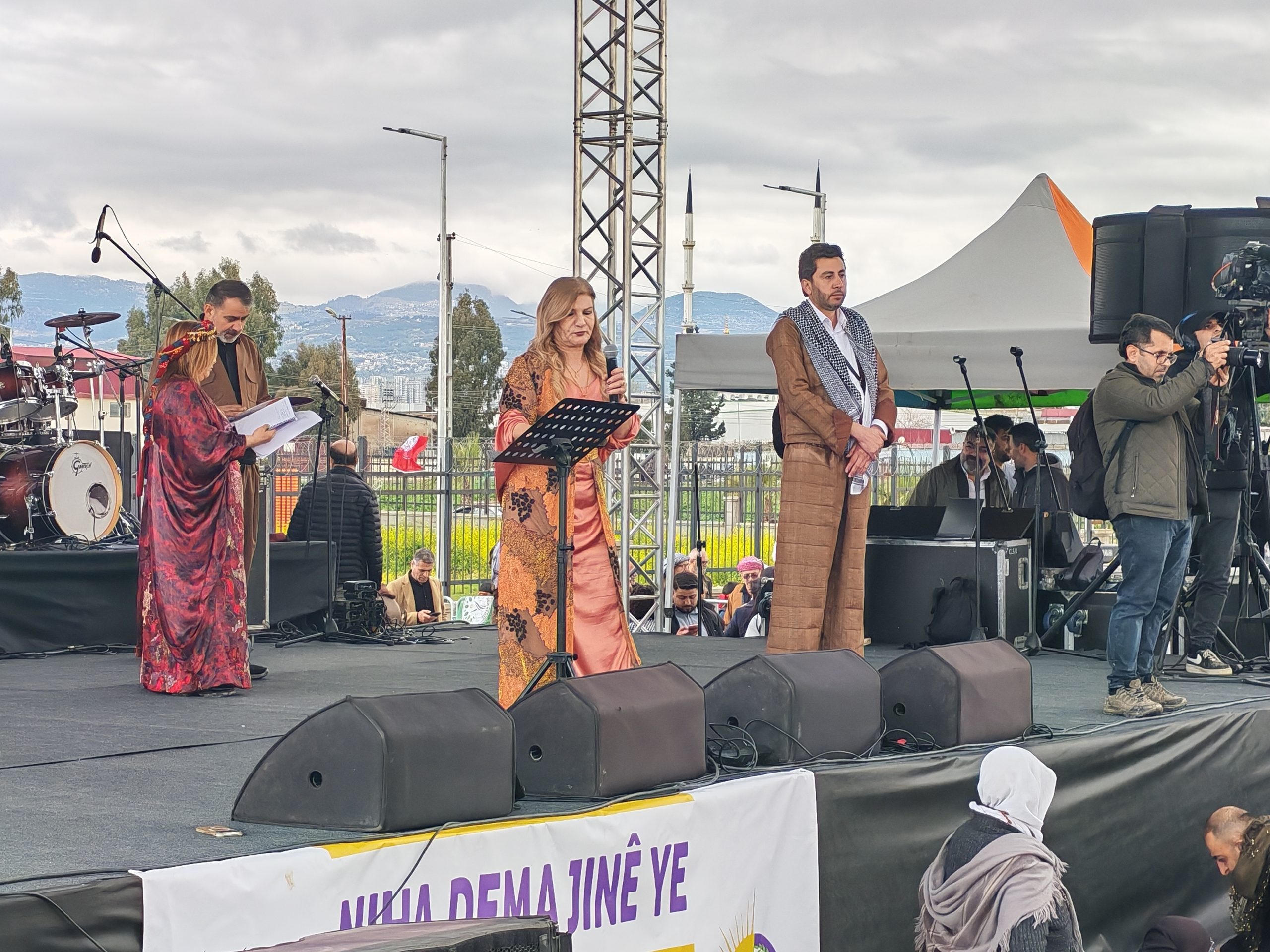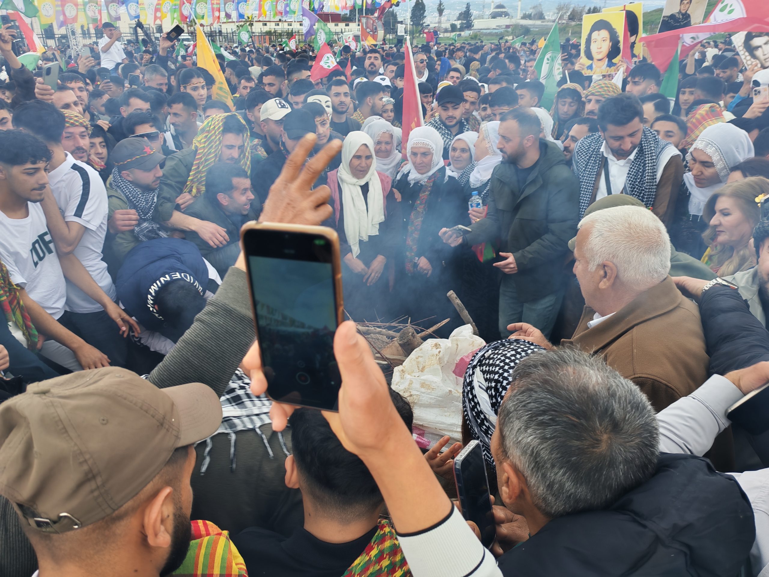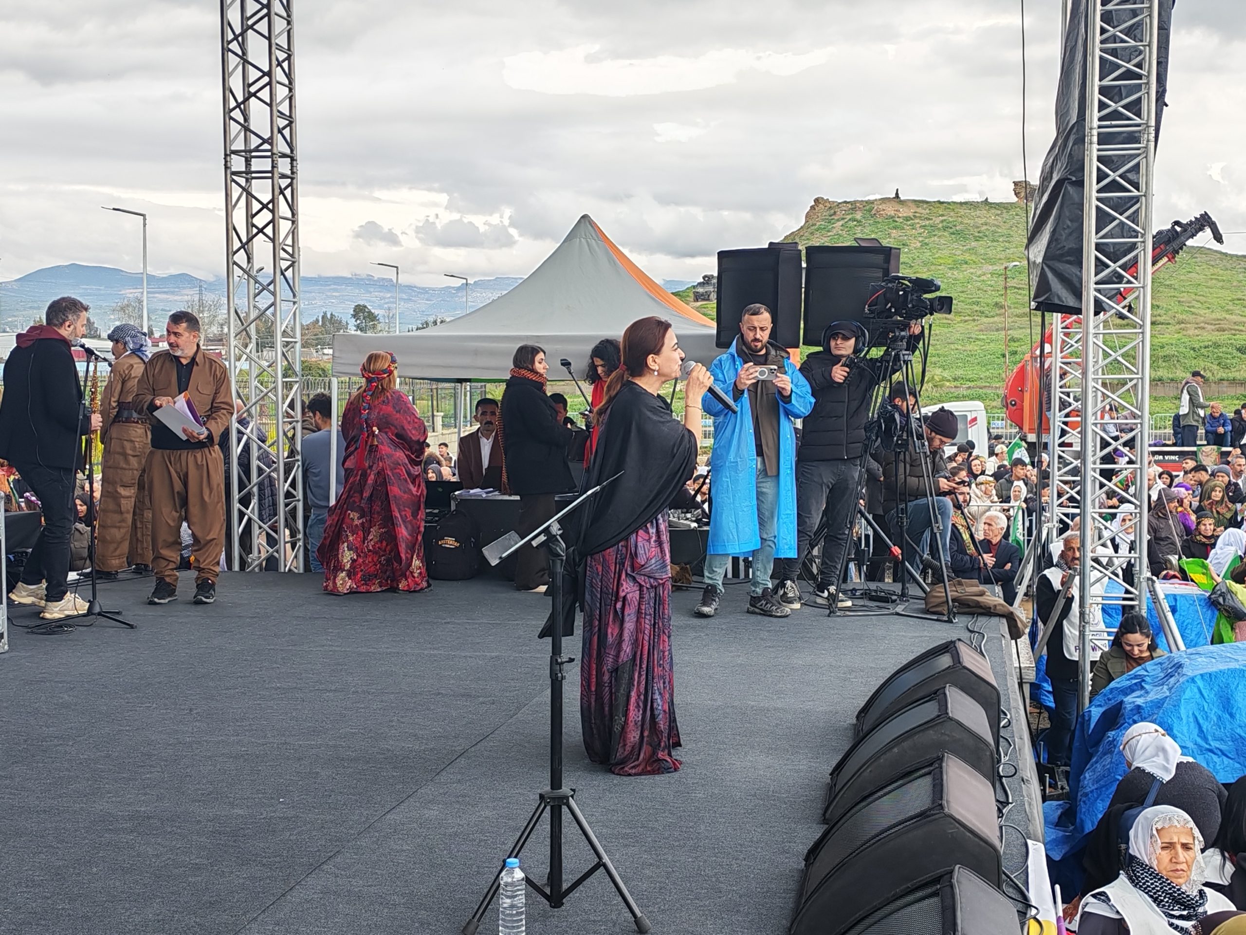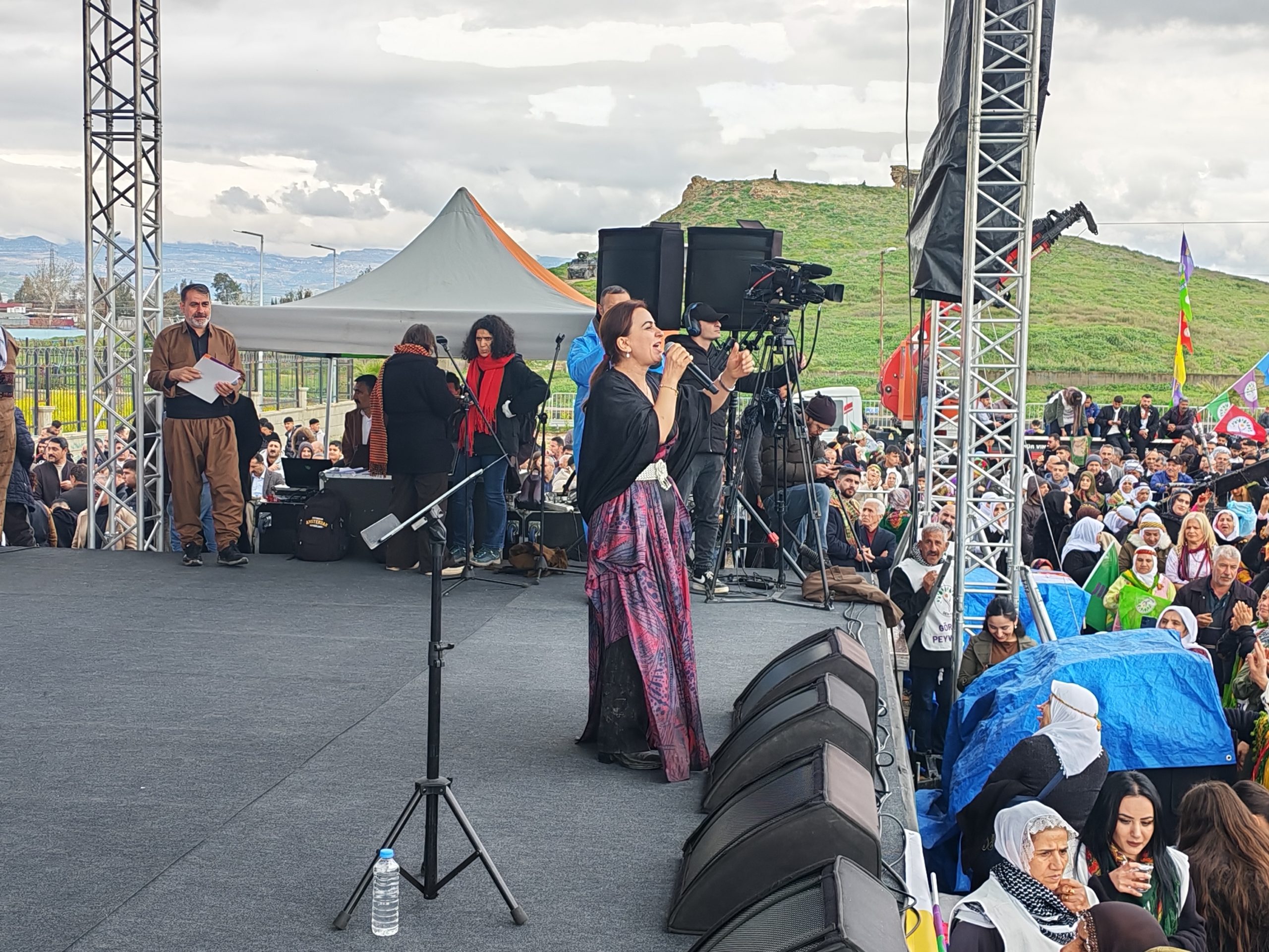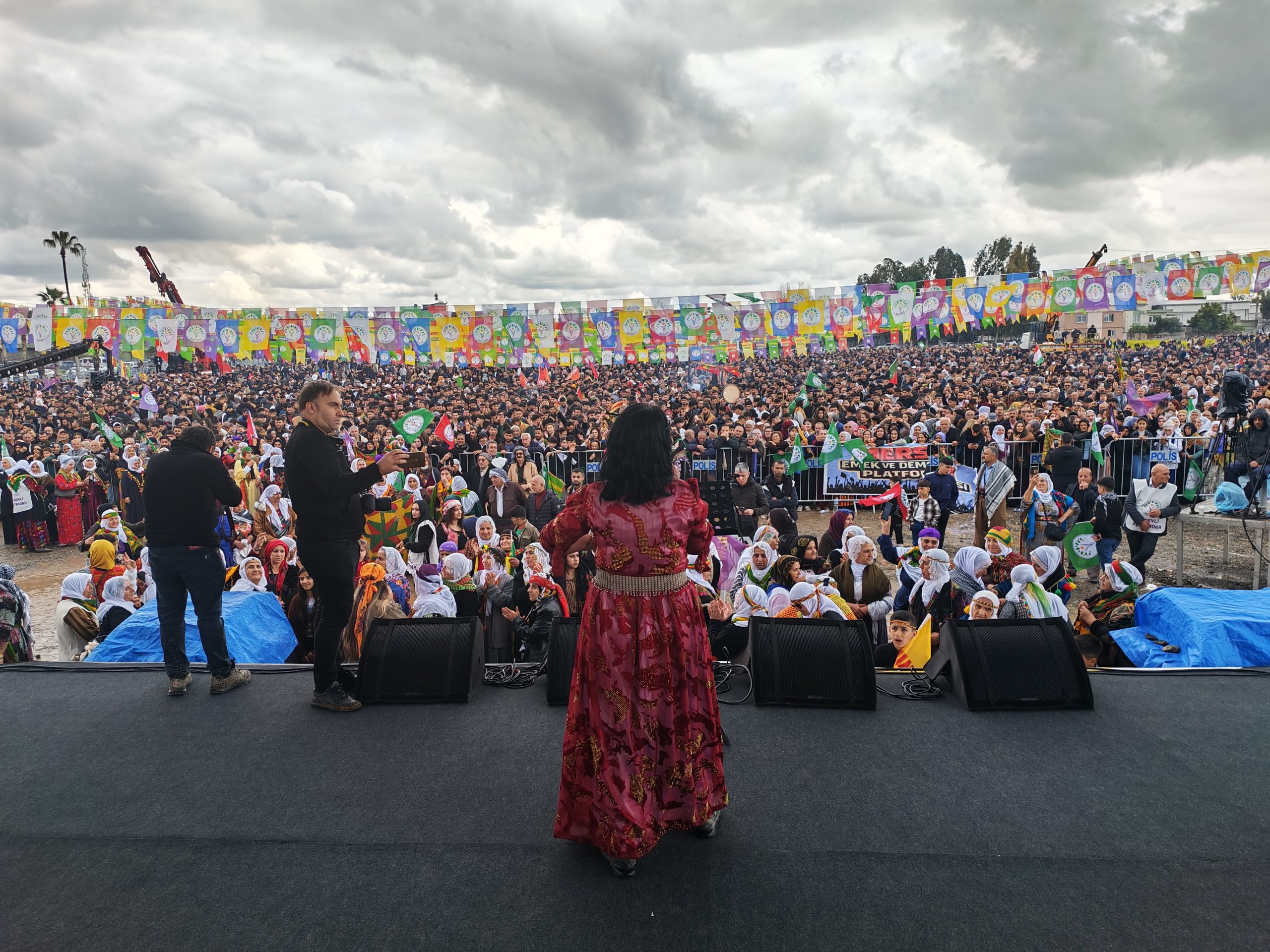 “Buradan İmralı’ya selamlarımızı yolluyoruz. Sayın Öcalan’ın Newroz’unu kutluyoruz. Kürtler Newroz alanlarında barış, özgürlük, demokrasi ve eşitlik taleplerini haykırıyor. Kürtler, ‘Kürt Halk Önderi Abdullah Öcalan’ın 27 Şubat’ta yaptığı çağrının arkasındayız’ diyor. Bizler Başur, Bakur, Rojava ve Rojhilat başta olmak üzere yaşadığımız tüm ülkelerde özgür, demokratik ve barışçıl bir yaşam istiyoruz. Biz bu bedelleri ödemiş milyonluk bir halkız. 3 kibrit çöpüyle aydınlanan zindanlar ve halkımızın mücadelesi bizi buraya getirdi. Rojava sürecinde ete kemiğe bürüne o ulusal ruhu güçlendirme ve büyütme zamanıdır.
