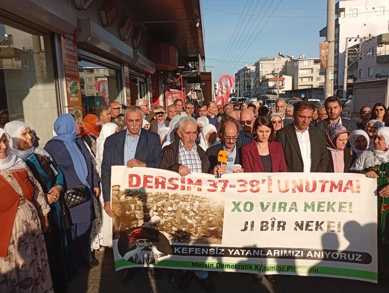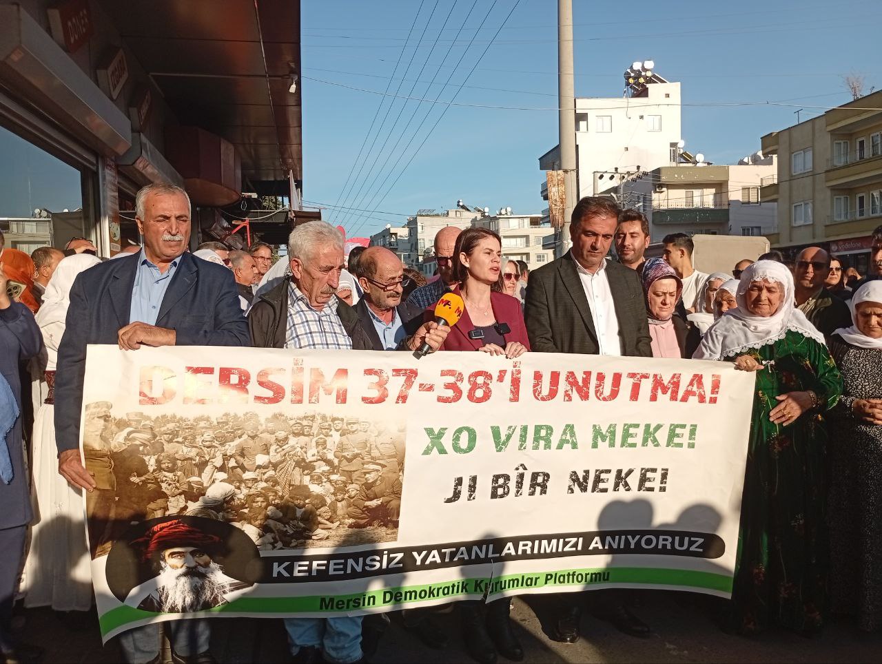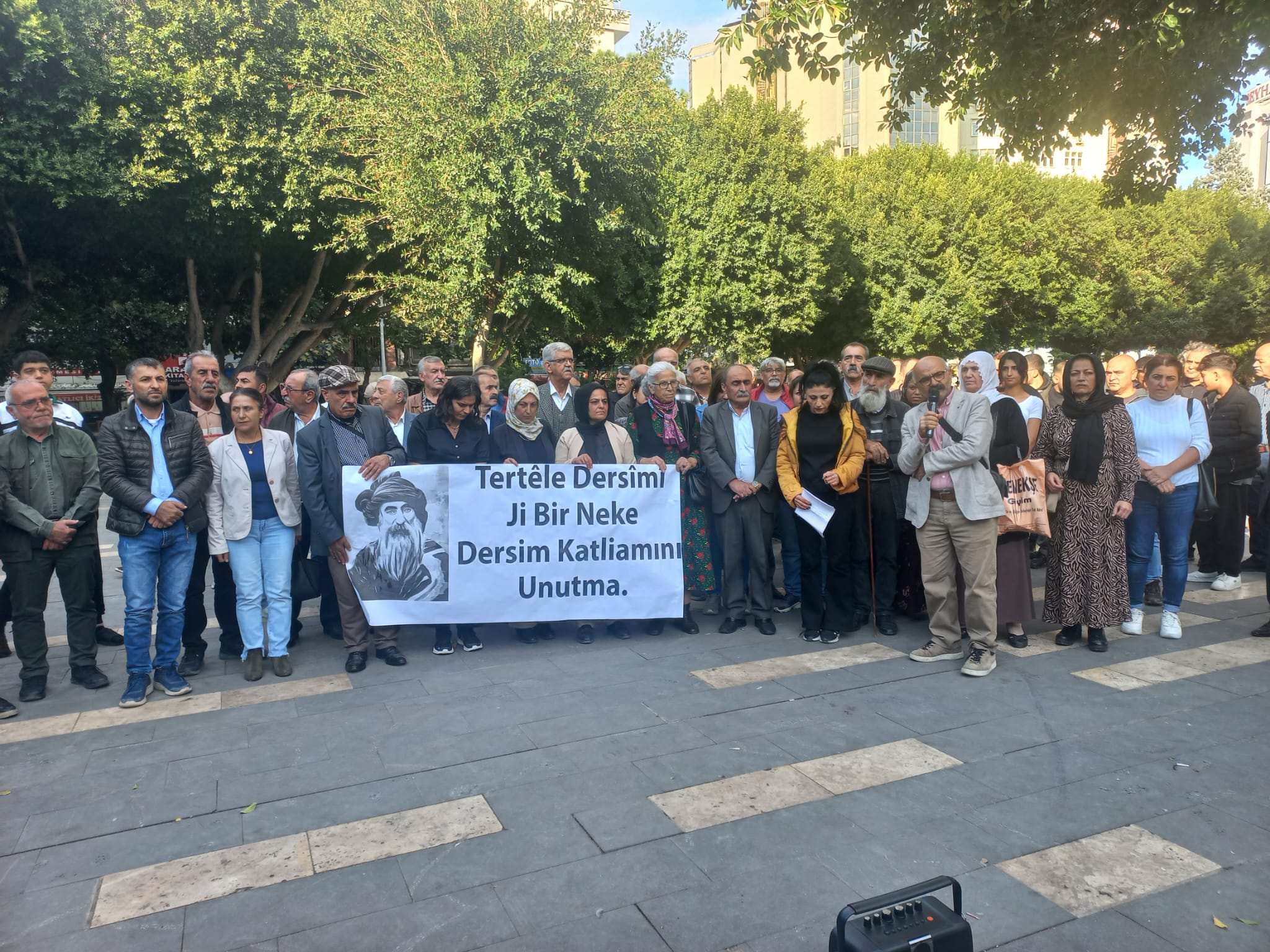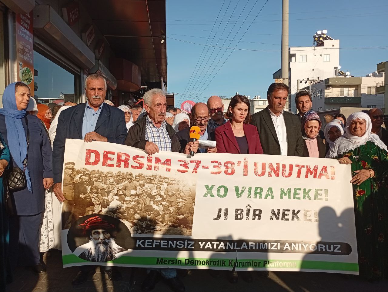 PİRHA- Mersin ve Adana’da Seyit Rıza ve yol arkadaşları anıldı. Adana’da konuşan DAD Eş Genel Başkanı Zeynel Kete, devletin yıllardır sürdürdüğü tekçi anlayışın Dêrsim’de yaşananların temel nedeni olduğunu söylerken, Demokratik Birlik İnisiyatifi Eşsözcüsü Gülcan Kaçmaz Sayyiğit de, Dersim’in sadece tarihsel bir acı değil, yüzleşilmesi gereken bir gerçeklik olduğunu vurguladı.