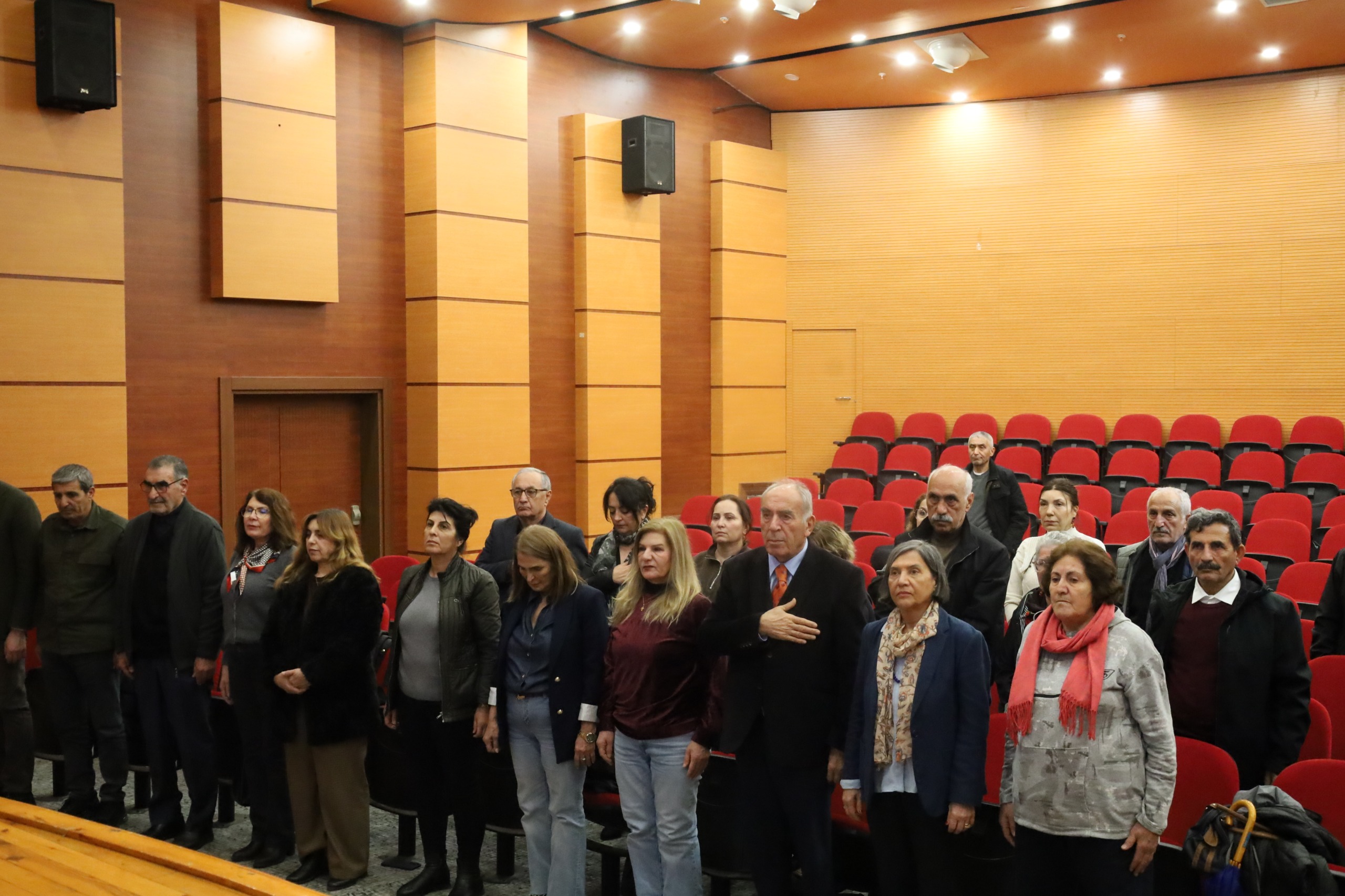 Burada ilk olarak söz alan AABF Onursal Başkanı Turgut Öker, Ortadoğu’da Aleviler açısından laik bir toplumsal yapının oluşmasının emperyalist güçler tarafından istenmediğine dikkat çekerek, “Colani adlı kişi kırmızı bültenle aranan bir katilken, bugün bir devlet başkanı gibi kırmızı halılarla karşılanıyor. Bu gerçeği görmeden Alevilere yönelik laik ve çağdaş bir yönetimin neden oluşturulmadığını anlamamız mümkün değil. Bu nedenle bu topraklarda laik ve çağdaş güçlerle dayanışma içinde olmamız, bir araya gelmemiz gerekiyor” dedi.