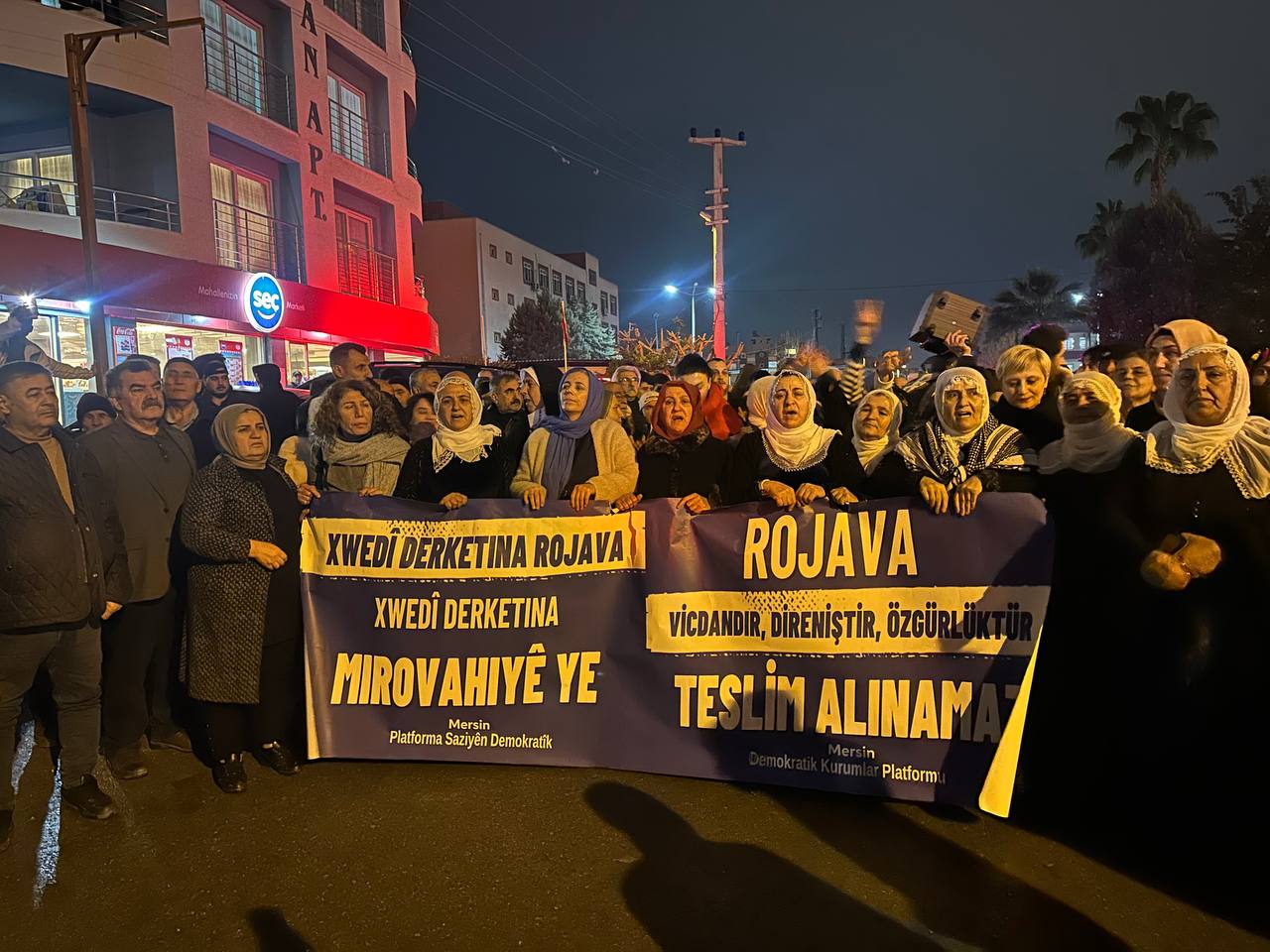 Mersin Demokratik Kurumlar Platformu, Suriye Geçici Hükümetinin Halep’te Kürtlere dönük saldırılarına tepki göstermek amacıyla kitlesel yürüyüş düzenledi. Yürüyüşe Halkların Eşitlik ve Demokrasi Partisi (DEM Parti) il ve ilçe yöneticileri, DEM Parti Mersin Milletvekilleri Perihan Koca ile Ali Bozan, Barış Anneleri, İnsan Hakları Derneği Mersin Şubesi, Özgürlük için Hukukçular Derneği ve çok sayıda yurttaş katıldı.
