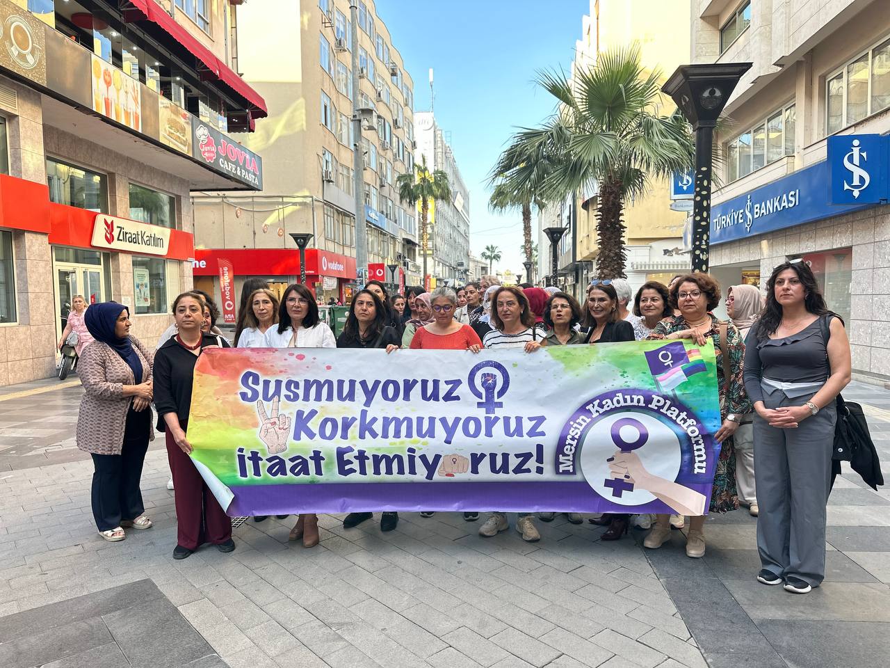 Mersin Kadın Platformu, kentte son 2 ayda en az 4 kadının erkekler tarafından öldürülmesi, İstanbul ve İzmir’de trans kadınların saldırıya uğraması, Şırnak’ta bir kadının asker tarafından tacize uğraması üzerine basın açıklaması yaptı. Atatürk Caddesi’nde bir araya gelen kadınlar “Susmuyoruz, korkmuyoruz, itaat etmiyoruz” yazılı pankart açtı.
