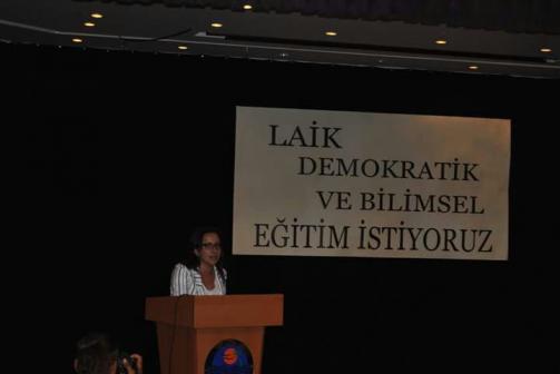“Bu kadar tutuklamalara ve baskılara rağmen ayaktayız” diyen Eğitim -Sen Genel Başkanı Feray Aytekin Doğan ise “Laik ve bilimsel eğitim için çabalarımız daha önce başlamıştı. 4+4+4 eğitim sistemi bu eğitim sisteminin bir başlangıcıydı. AKP 2002 yılında bağıra bağıra yeni Türkiye’yi haber veriyordu” dedi.