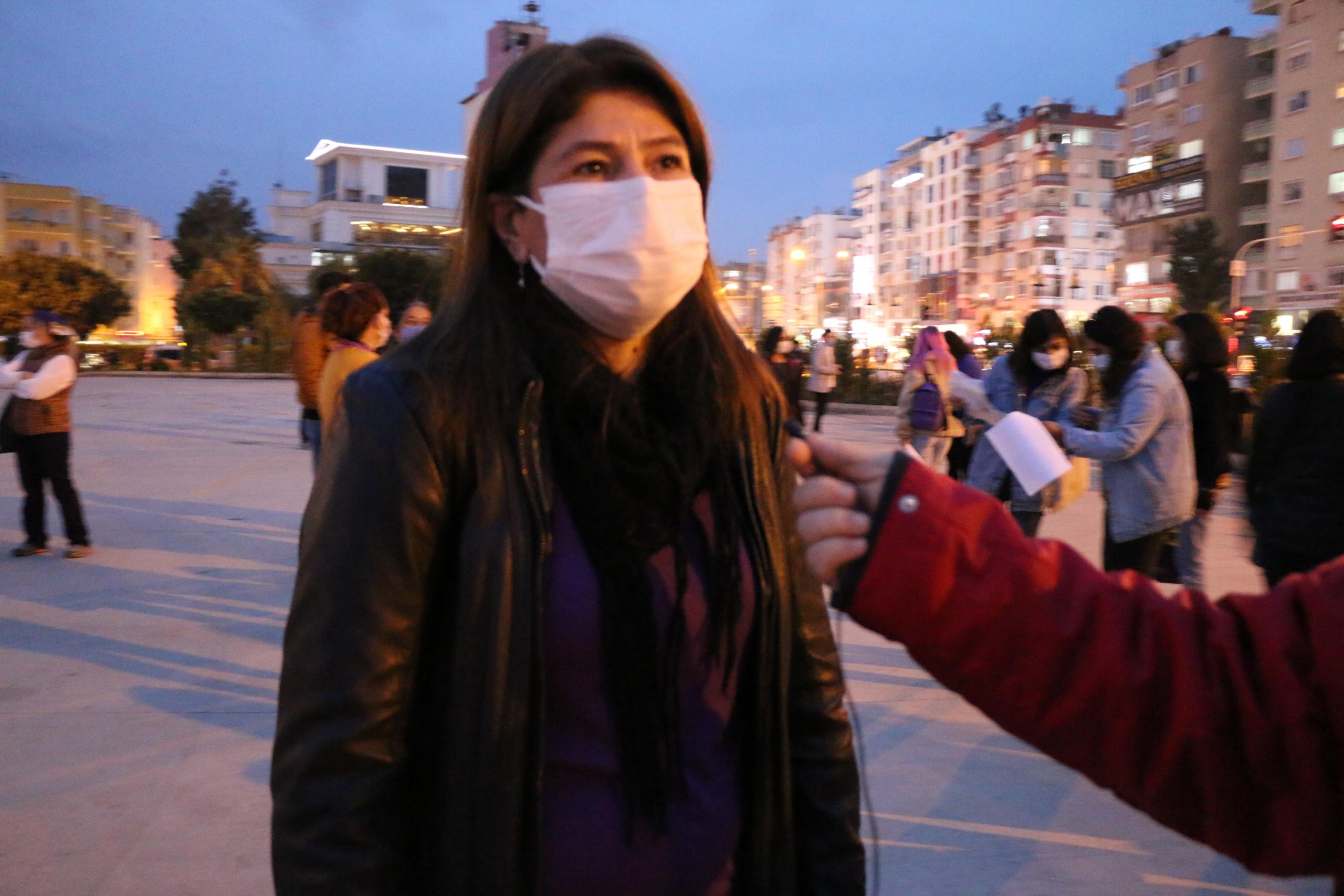 “Görüyorum ki bugün kadınlar ölüme katliama karşı bugün sokaklarda. Kadın katliamını gerçekleştirenleri kınıyorum. Kadın yaşamdır yaşama kıymayalım” derken, sağlık emekçisi kadın da “Hem sağlık alanında hem de pandemi zamanında çalışan kadınlar artı bir şiddet görüyor. Şiddet her yerde ve buna karşı kadınlar birleşerek, yan yana durarak, 6284’ü uygulatarak şiddeti azaltabiliriz.”