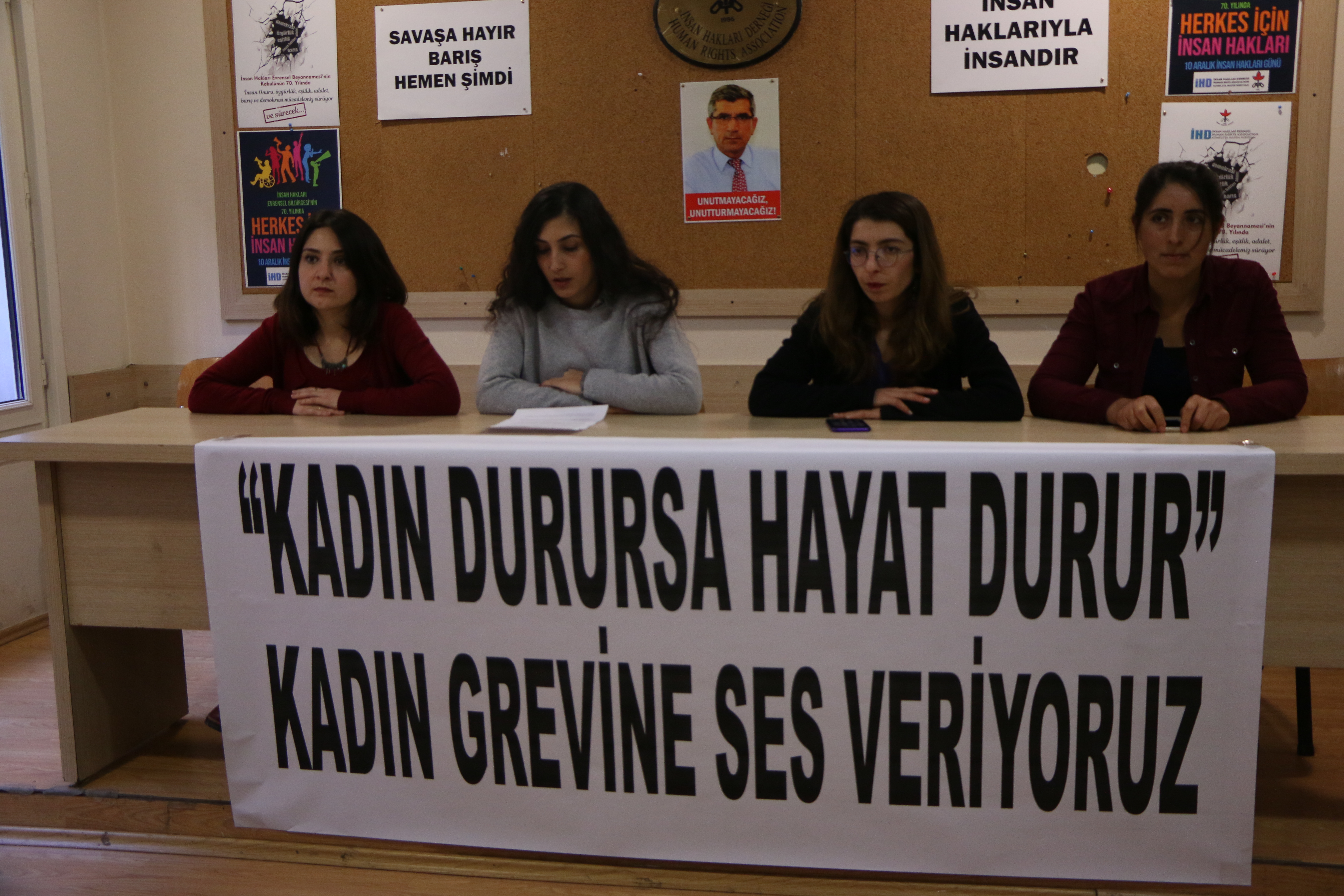 PİRHA – Mezopotamya Kadın Gazeteciler Platformu ve ETHA bugün “Kadın durursa hayat durur” başlığıyla yaptıkları açıklamada kadınların yarın yapacakları eyleme destek vereceklerini açıkladı.