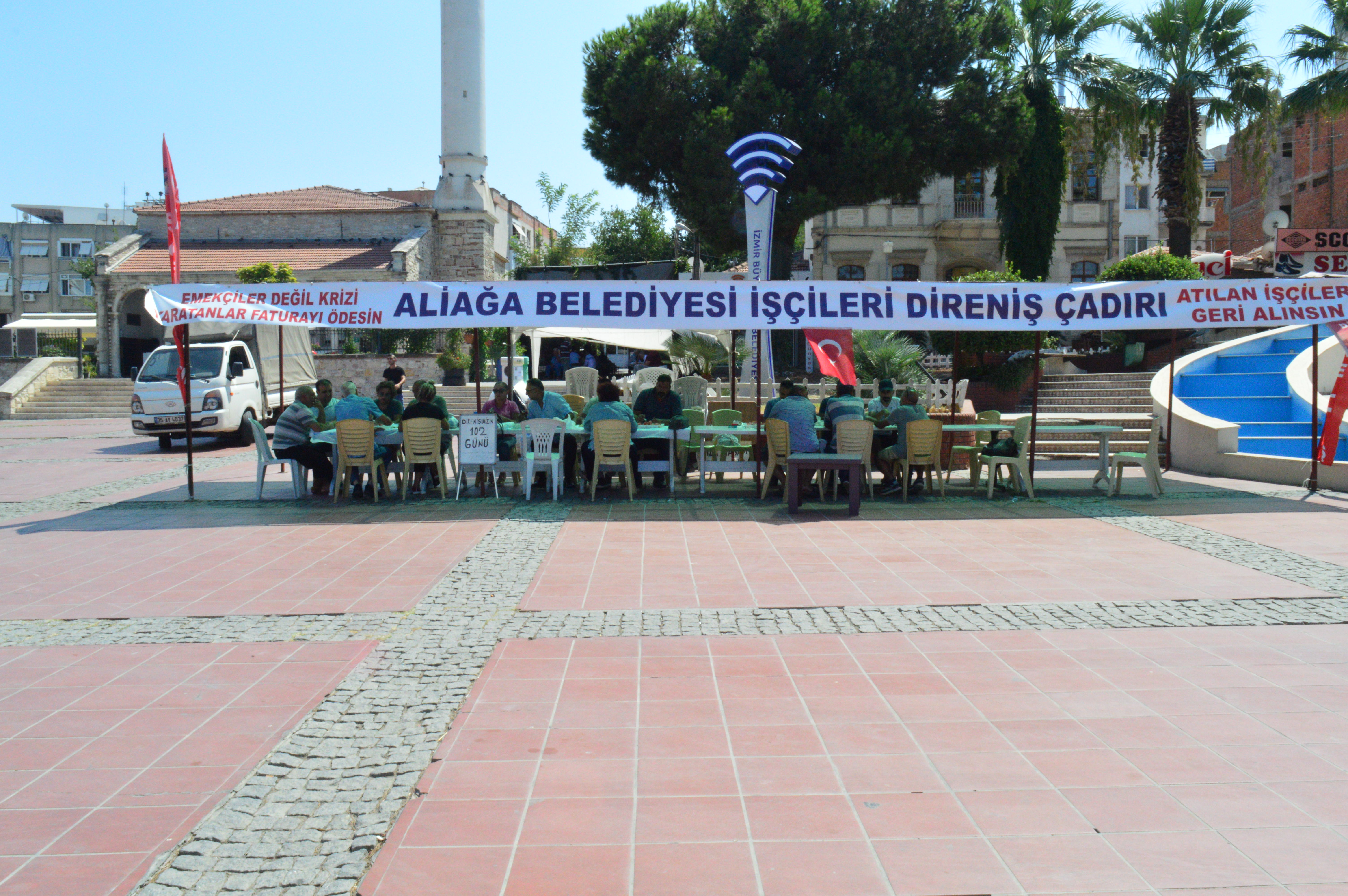 MHP’li Aliağa Belediyesi tarafından işten çıkarılan işçilerin direnişi 103. gününde devam ediyor. İşlerine geri dönmek için Demokrasi Meydanı’nda eylemlerini sürdüren işçilerle dayanışma ziyaretleri ise devam ediyor.
