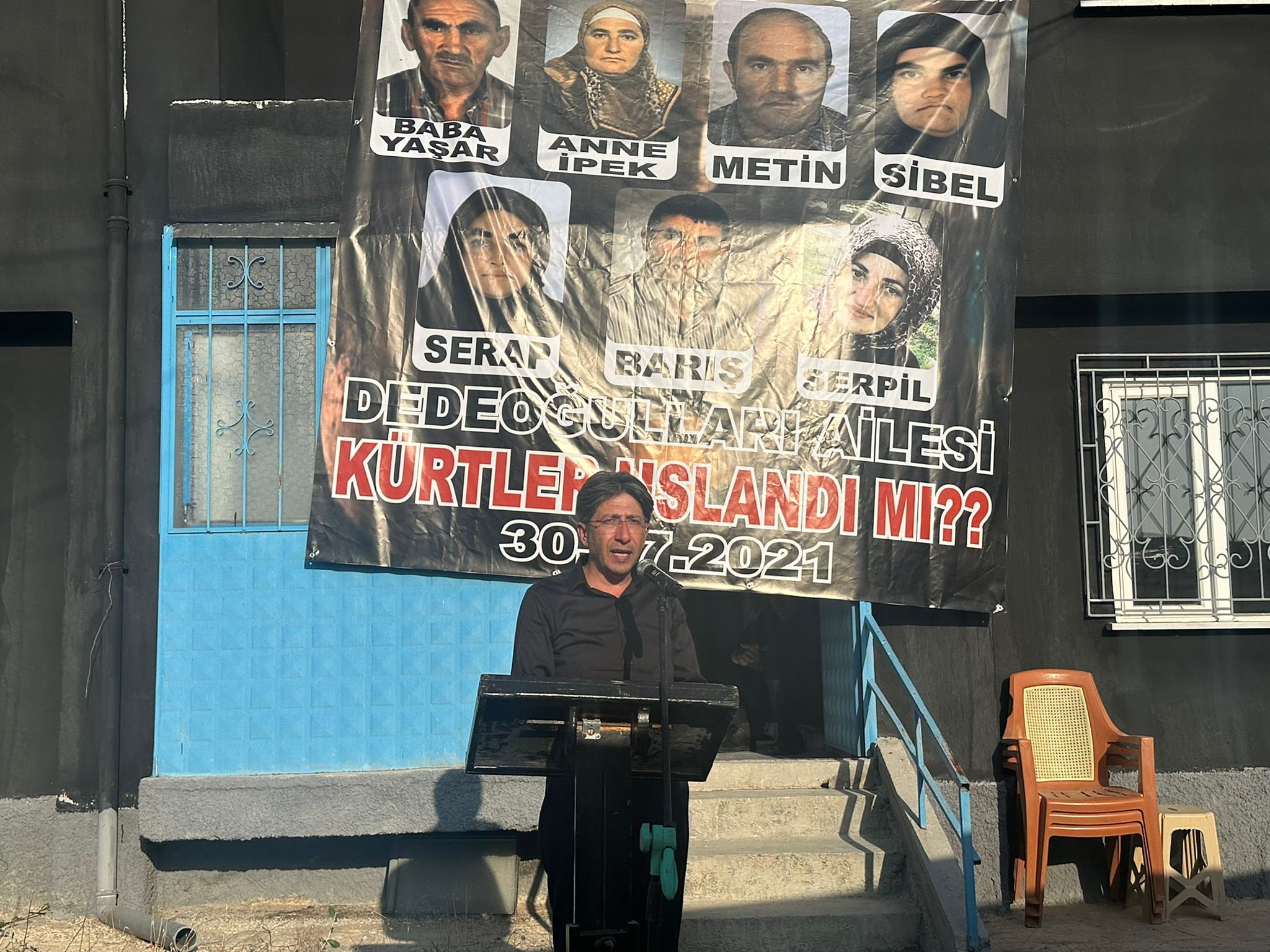 Katliamın gerçekleştirildiği evin bahçesinde konuşan DEM Parti Mersin Milletvekili Av. Ali Bozan, “Bu katliamda kamu görevlilerinin sorumluluğu var. Ailenin yardım ve koruma çığlıklarını duymayan kamu görevlilerinin sorumluluğu var. Yargıtay kararıyla onlar aklandı. Yine tetikçiye yardım eden, tetikçiyi koruyan, tetikçiyi azmettirenler vardı. İşte o yargı kararıyla onların maalesef tamamı yine aklandı. Bu coğrafyaya kalıcı bir barışı getirmek için, gerçek anlamda bir çözümü getirmek için önce bu coğrafyada yaşanan katliamlarla yüzleşmek gerekiyor. Dedeoğulları katliamı sadece Dedeoğulları ailesine yönelik bir katliam değildi. Dedeoğulları katliamı Dedeoğulları ailesinin Kürt olması nedeniyle gerçekleştirilmiş bir katliamdı. Bu nedenle ırkçı amaçlarla gerçekleştirilmiş bir katliamdı” dedi.