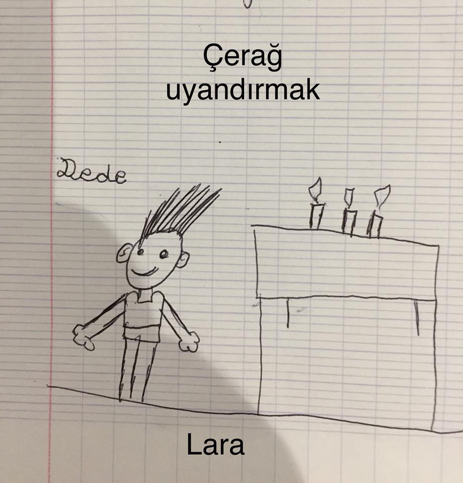Alevilik derslerini veren hocaları küçük yaşlardaki Helin, Ali Ozan, Tilda, Lara ve Elise’ye gördükleri derslerin resimlerini çizmelerini istemiş.