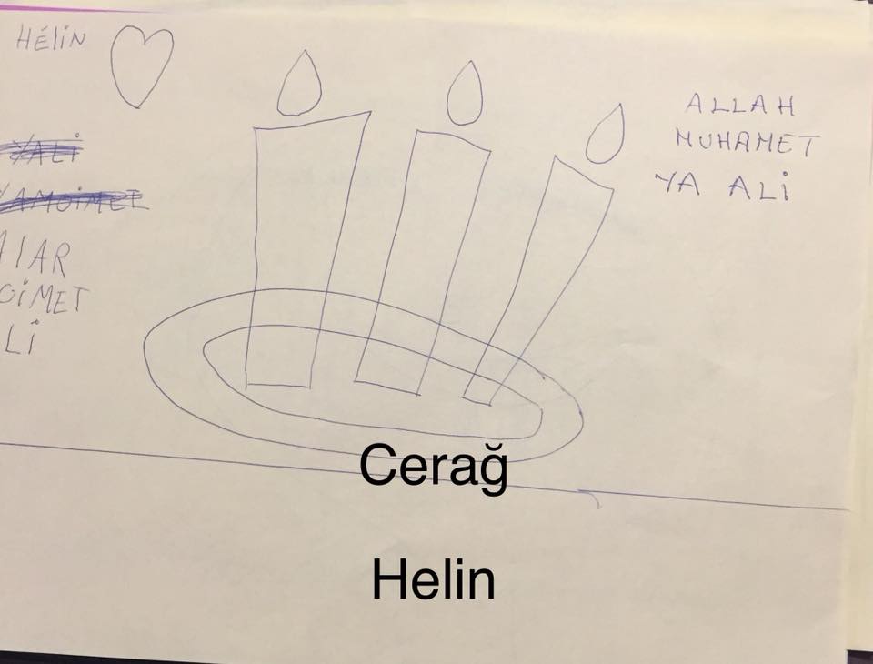 “Bugün çocuklarımızla bugüne kadar yaptığımız Alevilik derslerini özetledik ve bakın çocuklarımız yaptığımız dersleri resim yaparak nasıl anlatılar.”