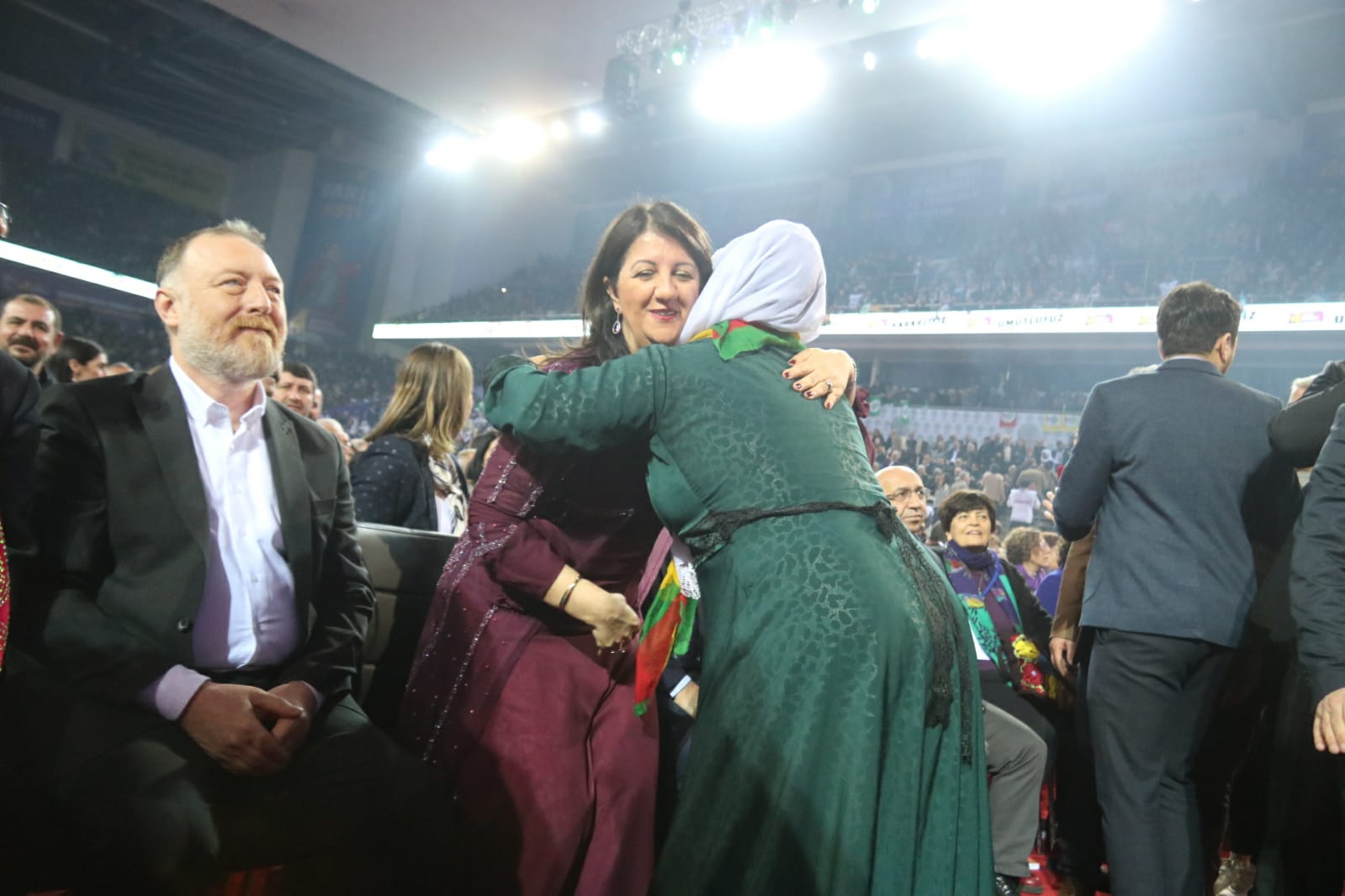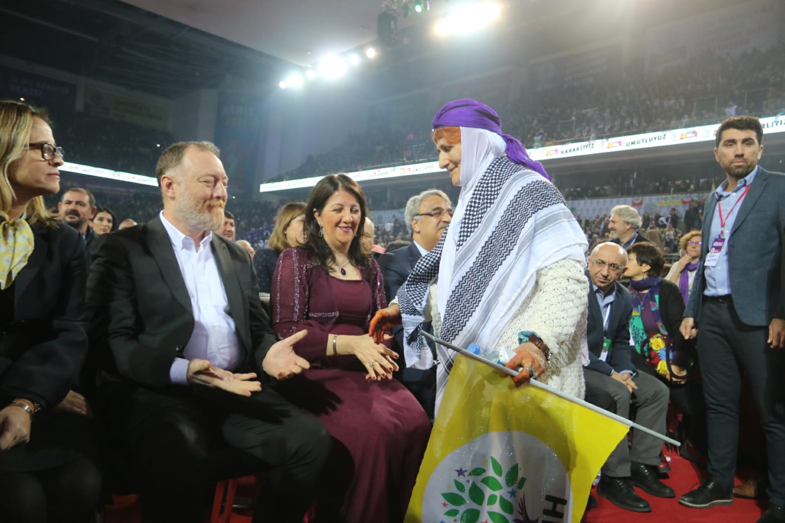 Yolundan bedel ödeyerek vazgeçmeyenler çoğalıyor, bundan kimsenin kuşkusu olmasın. Direnmenin hikayesini size anlatmak haddime değil. Zaten burada videolarda da en çarpıcı biçimiyle hepimiz gördük. Bırakın videoları, her birimiz hayatının içinde yaşıyor. Ben özel olarak ne kadar direndiğinizi anlatmayacağım. Direnmek bizim içimizde. Direnmek zorunda kalan Kürtlerin, Türklerin, yoksulların, emekçilerin partisiyiz.