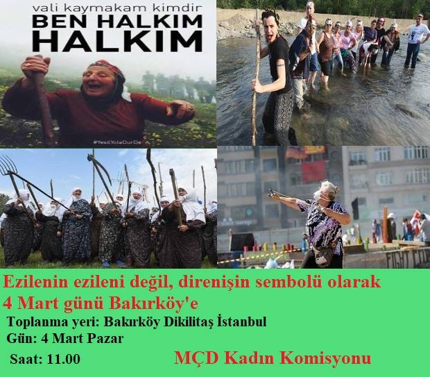 “Ezilenin ezileni değil, direnişin sembolü olarak 4 Mart günü Bakırköy’e!
