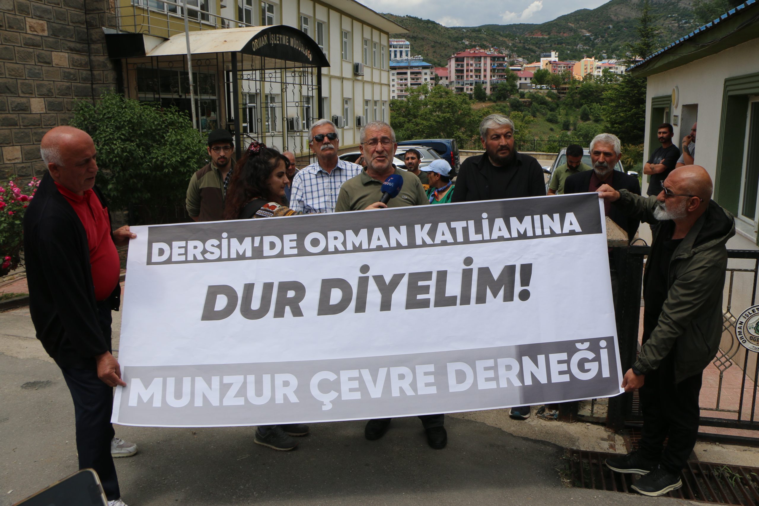 Dersim’de uzun süredir orman kıyımının sürdüğünü belirten Yusuf Topçu, “Rant ve kâr hırsı uğruna şirketler aracılığıyla doğamız talan edilmektedir. Dersim’deki orman kıyımına ormandan sorumlu kurumlar ve devlet organları da sessiz kalmaktadır. Ormanı ve ağacı sadece bir odun olarak gören, rant ve para uğruna doğayı katleden, bu orman kıyımını gerçekleştiren ve bu kıyıma izin veren zihniyeti biz çok iyi tanıyoruz ve biliyoruz. Kapitalizm gölgesini satamadığı ağacı keserek paraya dönüştürüyor, bugün burada bu zihniyeti teşhir ediyoruz. Dersim Hozat yolu arasındaki Çiçekli bölgesinde müteahhit Mehmet Turan tarafından genç filiz meşe ağaçlarının bulunduğu orman arazisi tıraşlanmaktadır. Biz Munzur Çevre Derneği olarak doğayı paradan ibaret gören bu kıyıma sessiz kalmıyoruz. Doğayı talan eden, kâr hırsı uğruna gerçekleştirilen kesim ihaleleri durdurulsun” dedi.