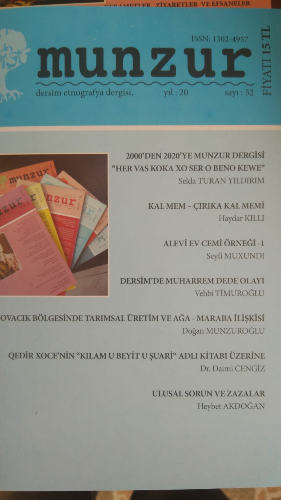 2000 yılının Ocak ayında ilk sayısını çıkaran Munzur (Dersim Etnografya Dergisi), 20. yılına girdi ve 52. sayısını da çıkardı.