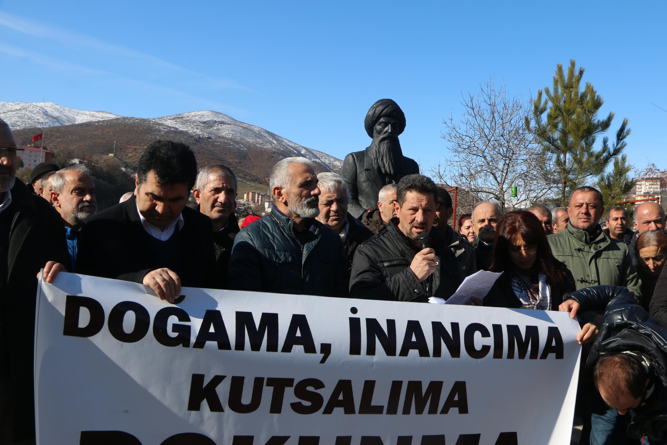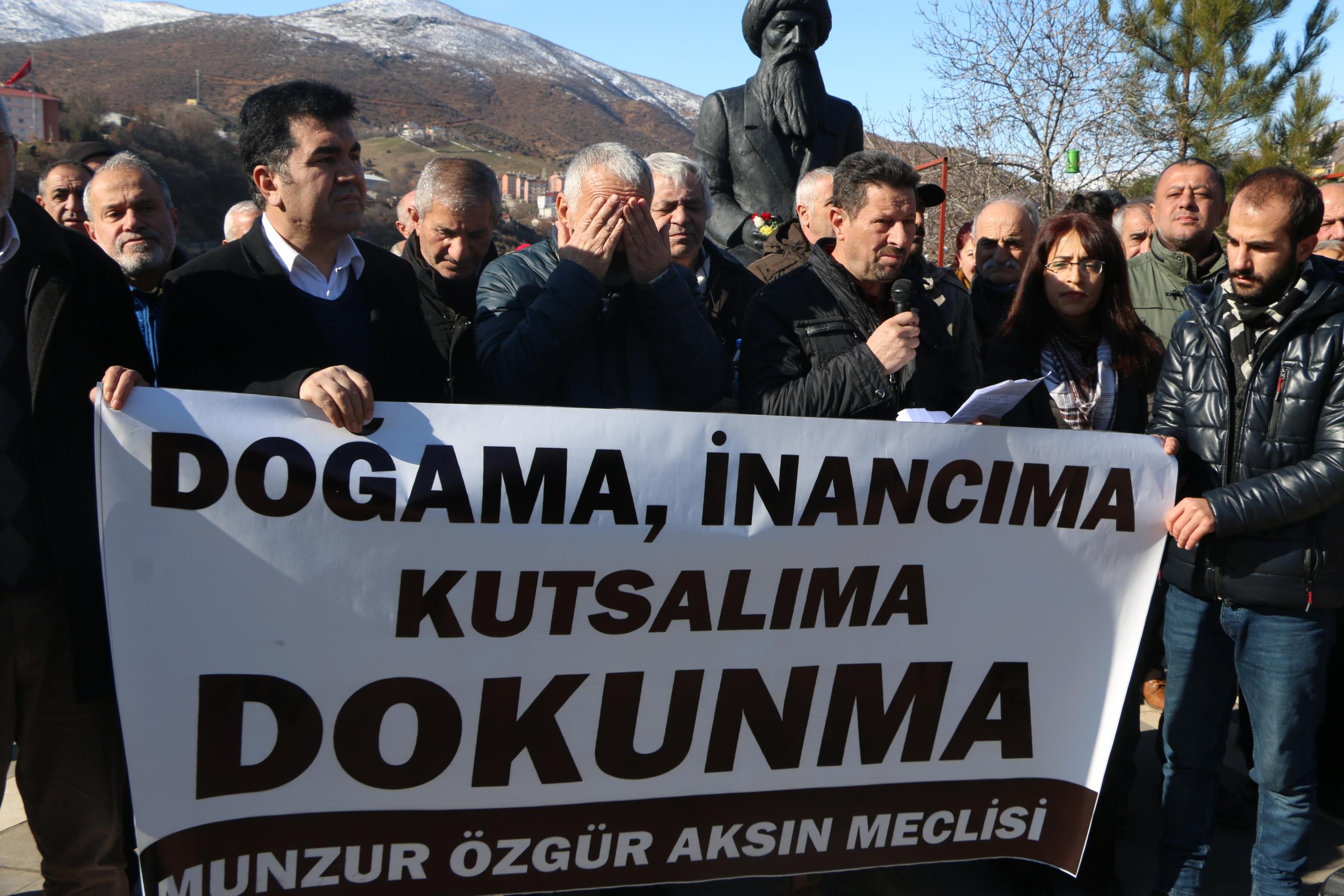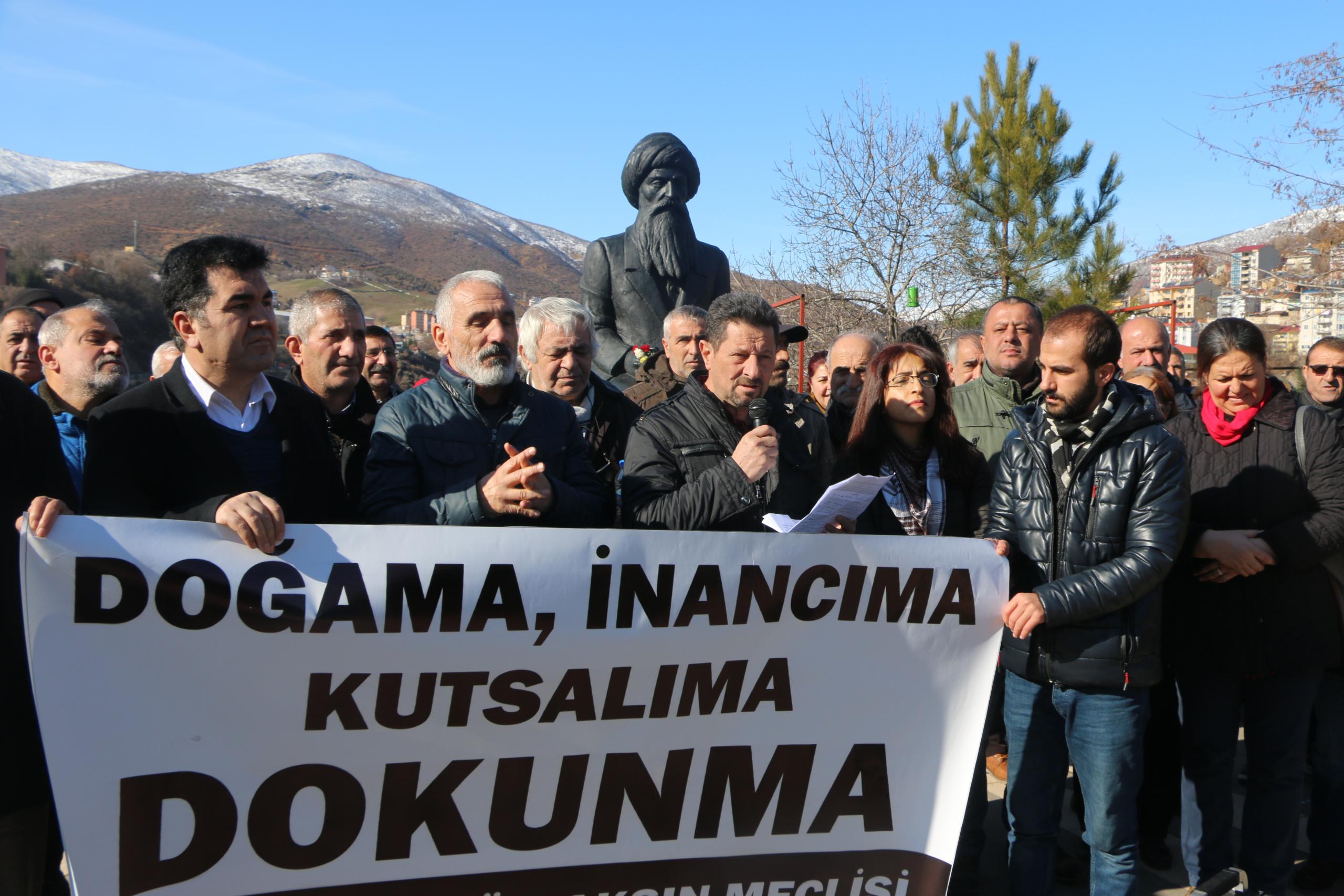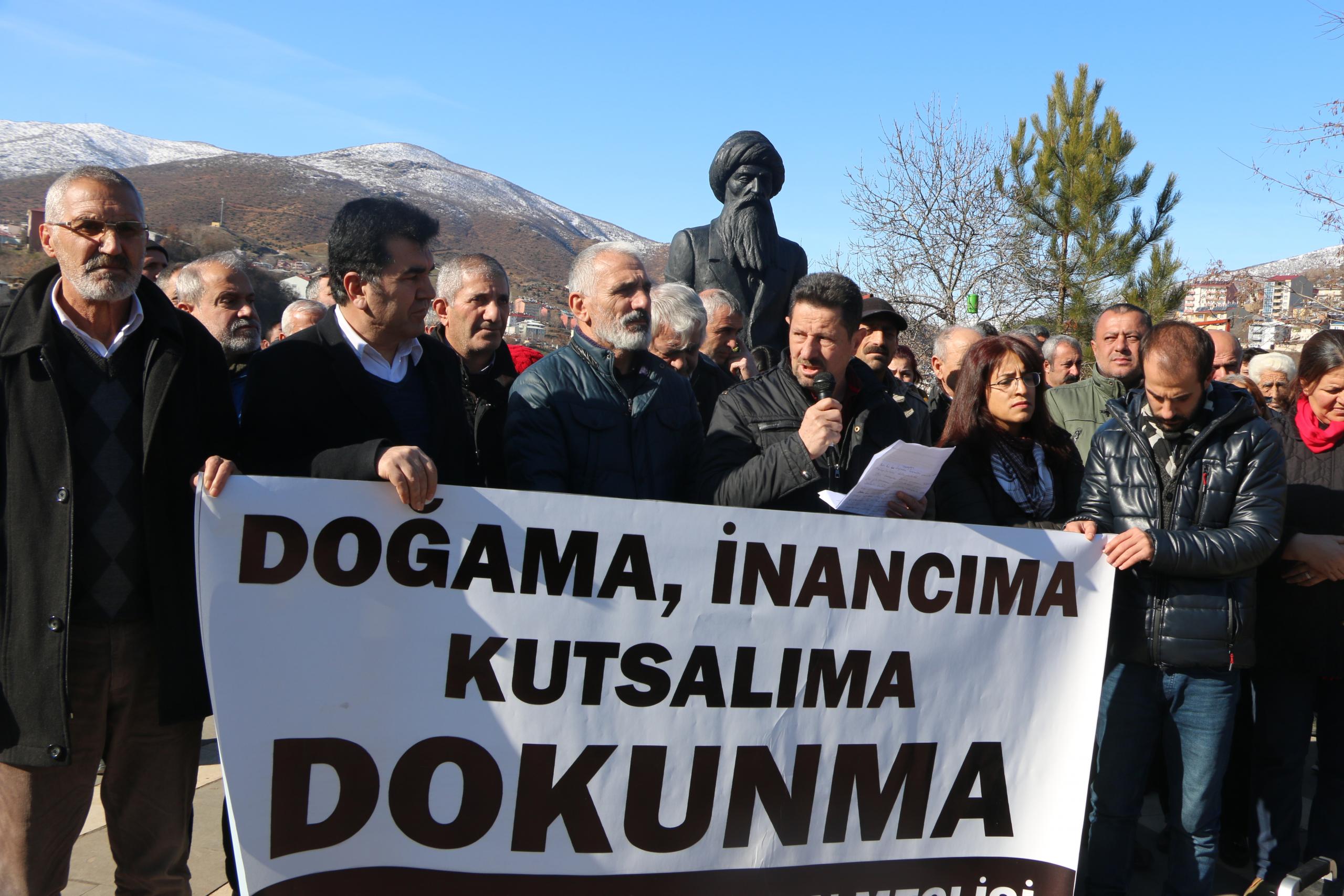 Açıklamayı okuyan Pir Sultan Abdal Kültür Derneği Dersim Şube Başkanı Ekber Kaya, “Doğa ana, bir hayat pınarıdır. Duranlara, uçanlara, konuşanlara, sürünenlere, yüzenlere, düşünenlere, koşanlara, ötenlere, yürüyenlere, akıp gidenlere gökyüzünden yeryüzüne inip çıkan yağmura, boraya, tipiye, fırtınaya, rüzgara, buhara ANA’dır. Toprağın Bereketi, suyun Azizliği, havanın Nefesi, ateşin kemaleti ve nurun aydınlığıyla doğayı var edendir. bu var oluşu, kerametiyle kanıtlayan kutsalların kutsalı doğuran (yaratan) doğa anadır” ifadelerini kullandı.