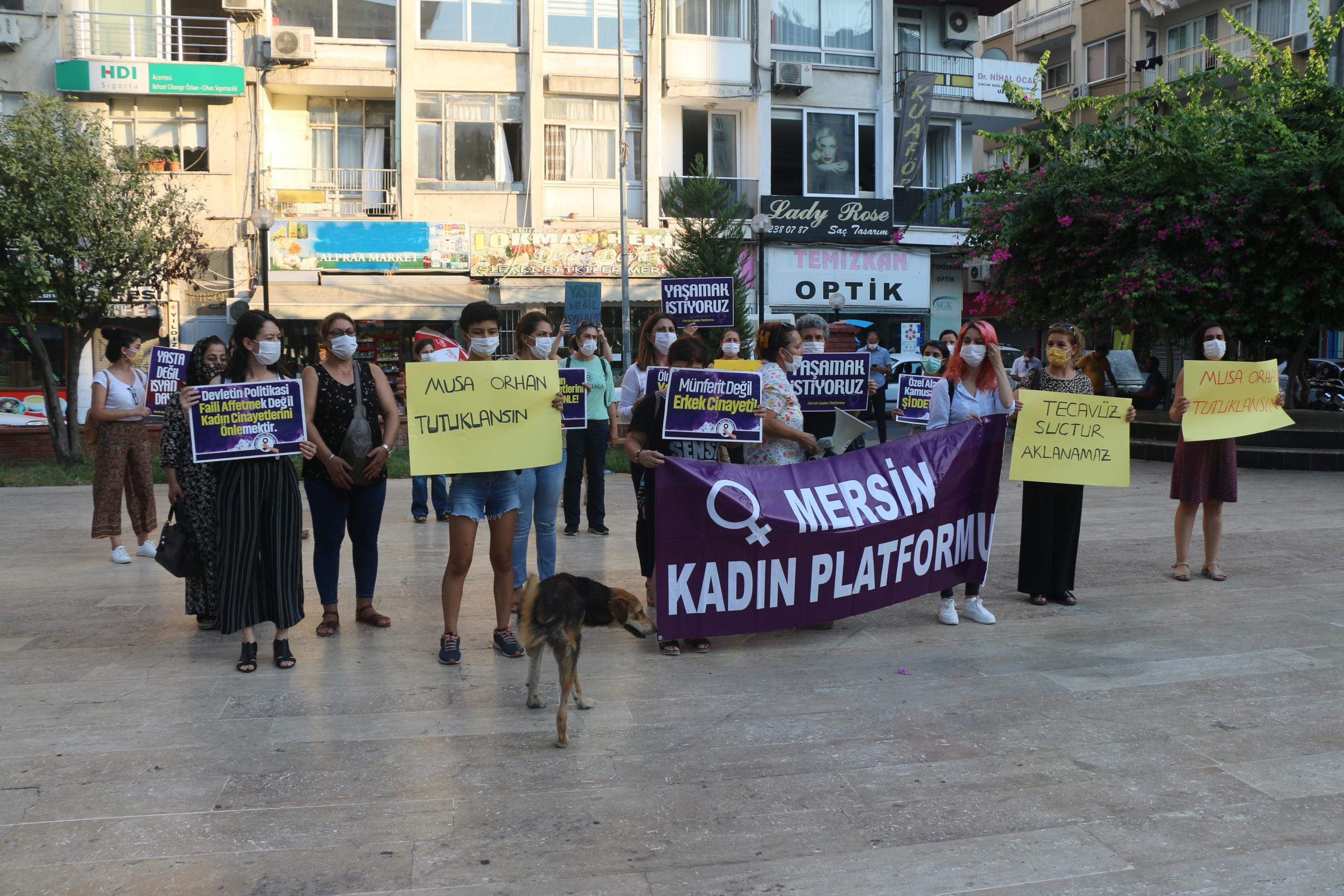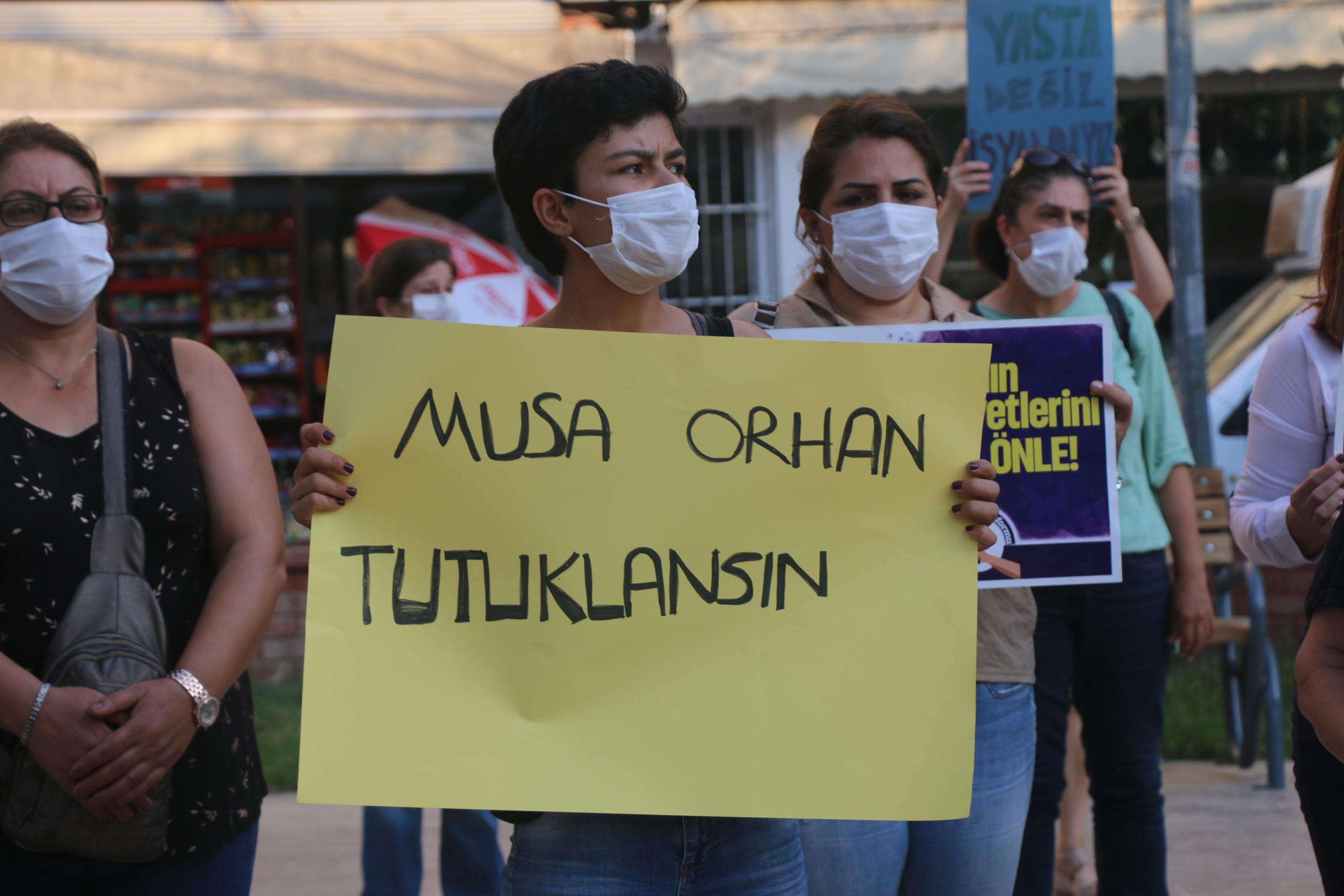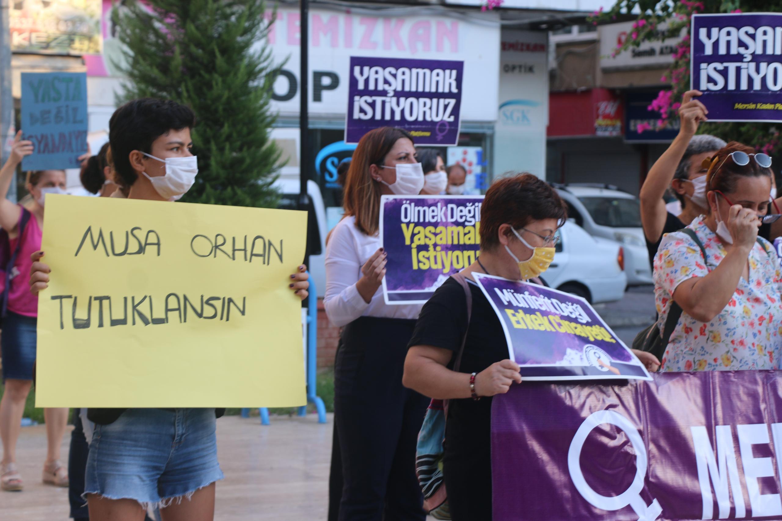 Mersin Kadın Platformu, Musa Orhan’ın serbest bırakılmasına tepki göstererek Özgür Çocuk Parkı’nda basın açıklaması yaptı.