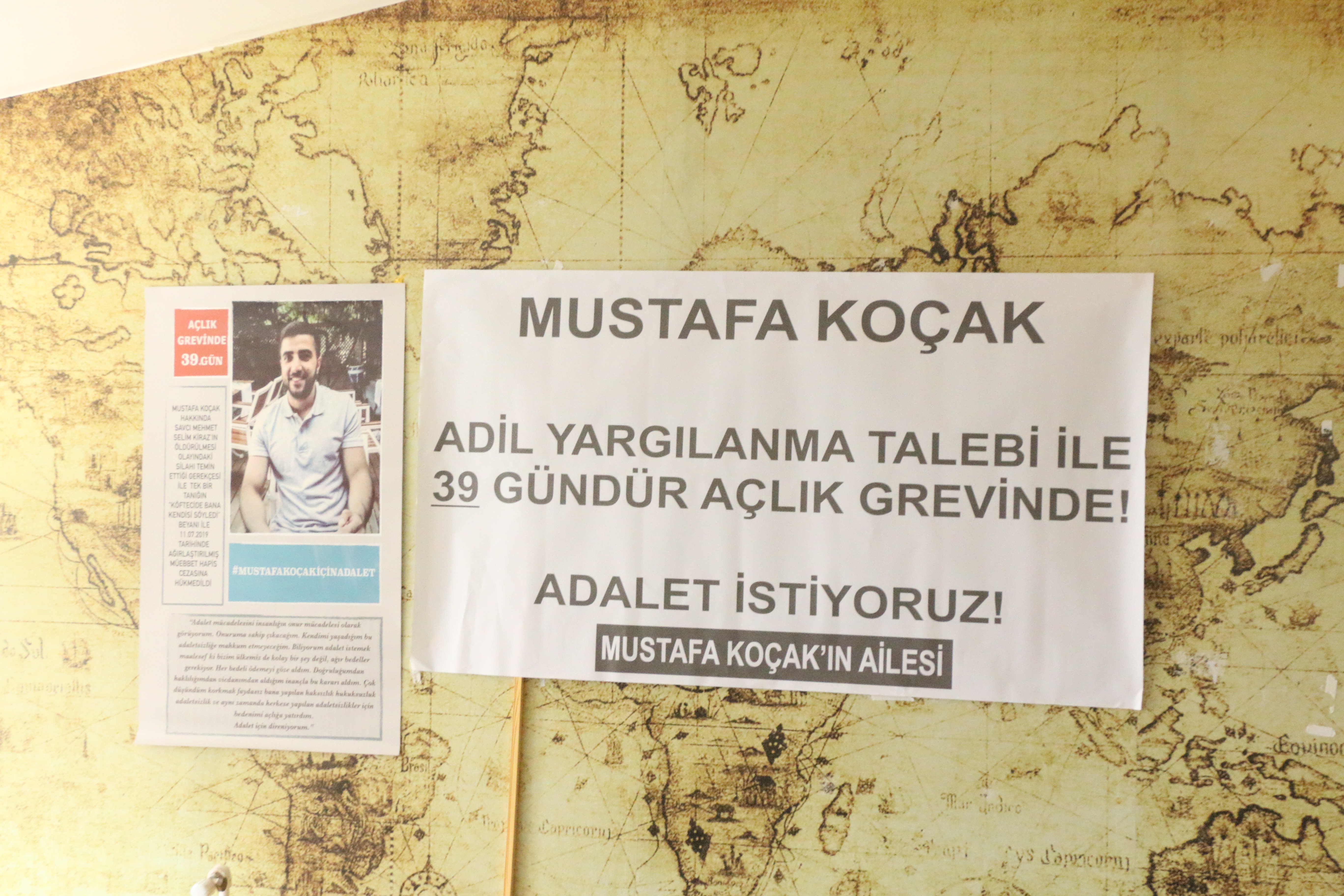 Koçak’ın ailesi ve avukatları, Mustafa Koçak’ın asil yargılanma talebine ve açlık grevine dikkat çekmek için Çağdaş Hukukçular Derneği (ÇHD) TV Stüdyosu’nda basın toplantısı düzenledi. Toplantıda, “Adil yargılanma talebi ile 39 gündür açlık grevinde adalet istiyoruz” pankartı asıldı.