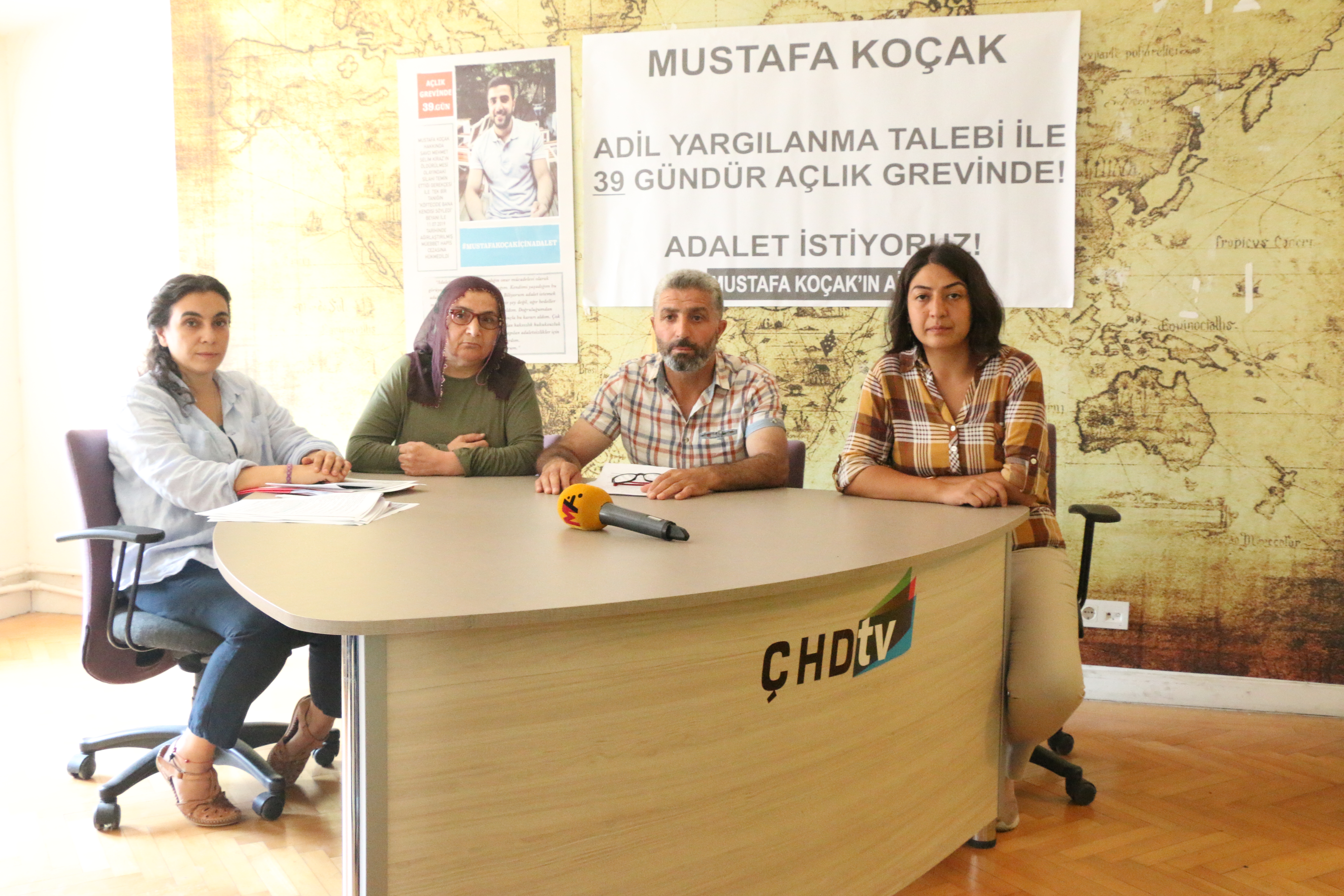 Koçak’ın ailesi ve avukatları, Mustafa Koçak’ın asil yargılanma talebine ve açlık grevine dikkat çekmek için Çağdaş Hukukçular Derneği (ÇHD) TV Stüdyosu’nda basın toplantısı düzenledi. Toplantıda, “Adil yargılanma talebi ile 39 gündür açlık grevinde adalet istiyoruz” pankartı asıldı.