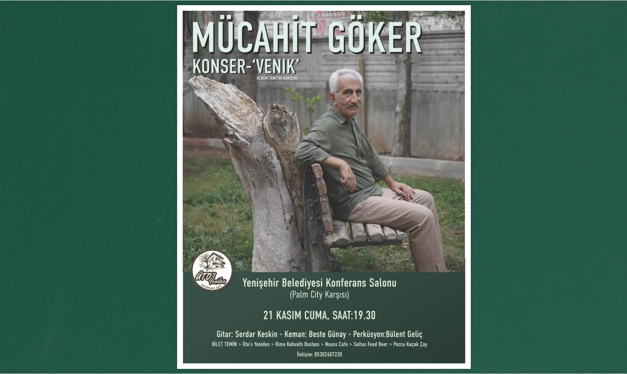 PİRHA- Yeni albümü Venik’in 21 Haziran’da yayınlanmasının ardından konser turnesine çıkan Mücahit Göker, Mersin’de konser verecek. 21 Kasım’da Yenişehir Belediyesi Konferans Salonu’nda yapılacak konsere Venik albümünün aranjörlüğünü de üstlenen müzisyen Serdar Keskin eşlik edecek.