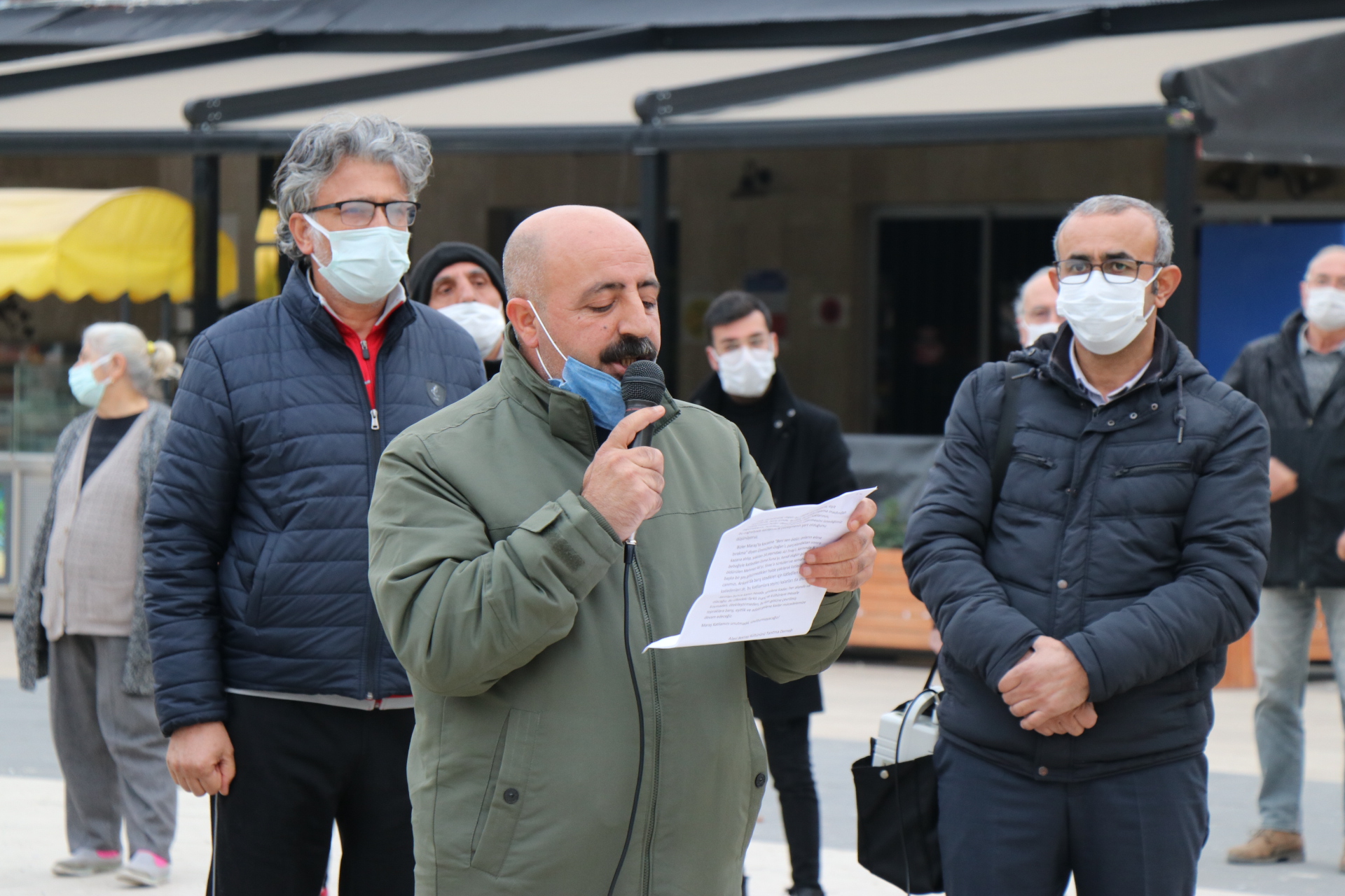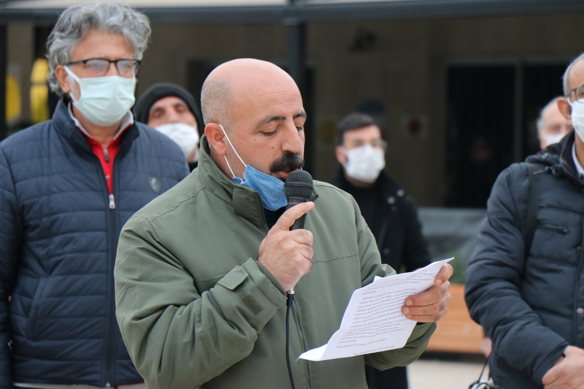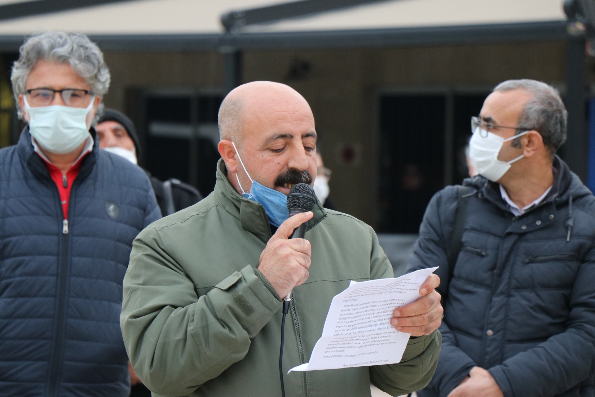 Açıklamayı okuyan Narlıdere Cemevi Başkanı Mustafa Aslan, Maraş Katliamı’nın hesaplanmış, planlı ve örgütlü bir saldırı olduğuna dikkat çekerek ülkede demokrasi ve insan haklarının yeşermesinin ancak katliamlarla yüzleşilmesi ile olacağını belirtti.