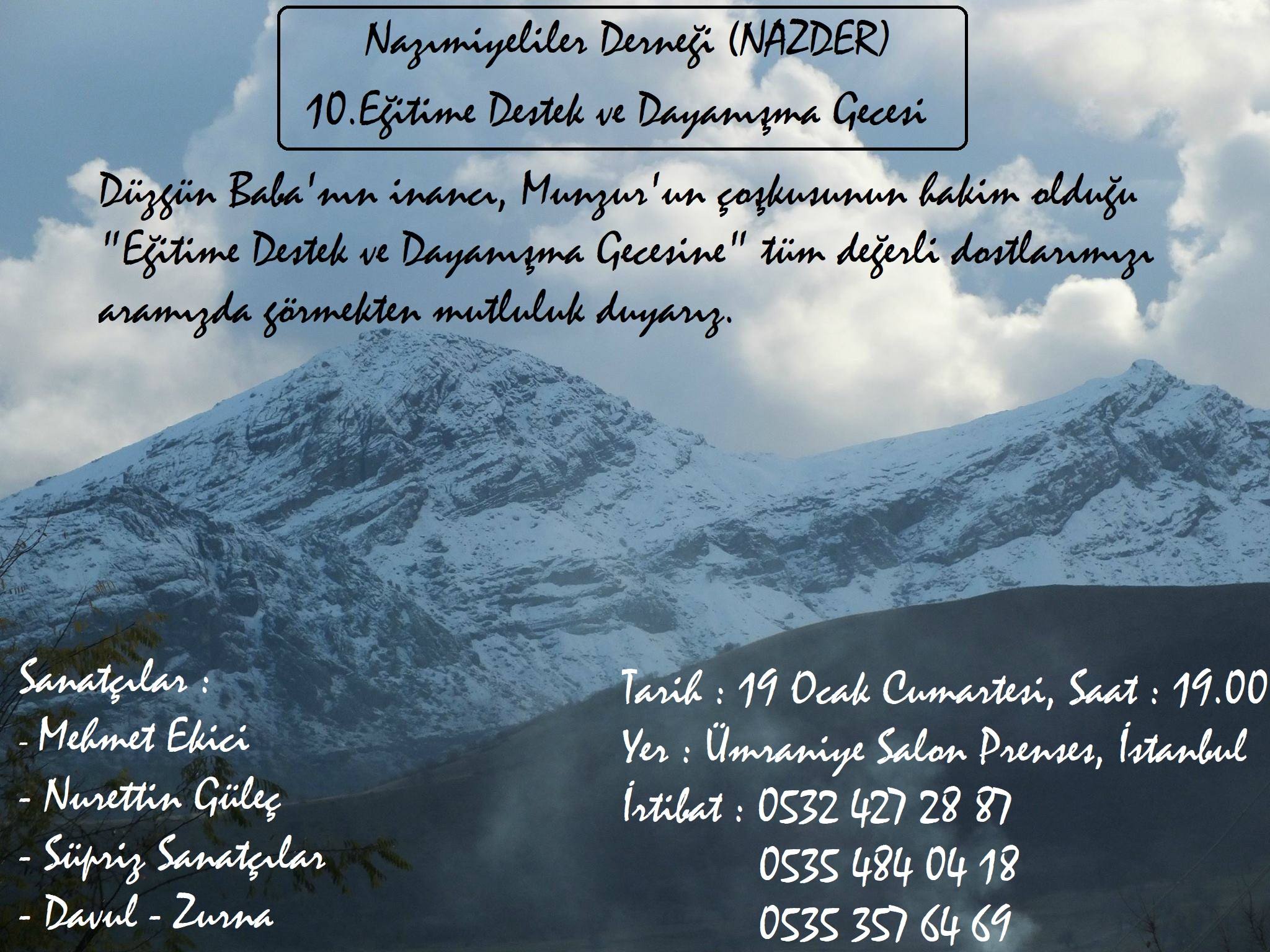 Her yıl düzenlenen gecenin amacı İstanbul’da ihtiyacı olan üniversitede okuuyan Nazmiyeli gençlere burs temin etmek. Dayanışma gecesi 19 Ocak günü Ümraniye’de bulunan Salon Prenses’te yapılacak.