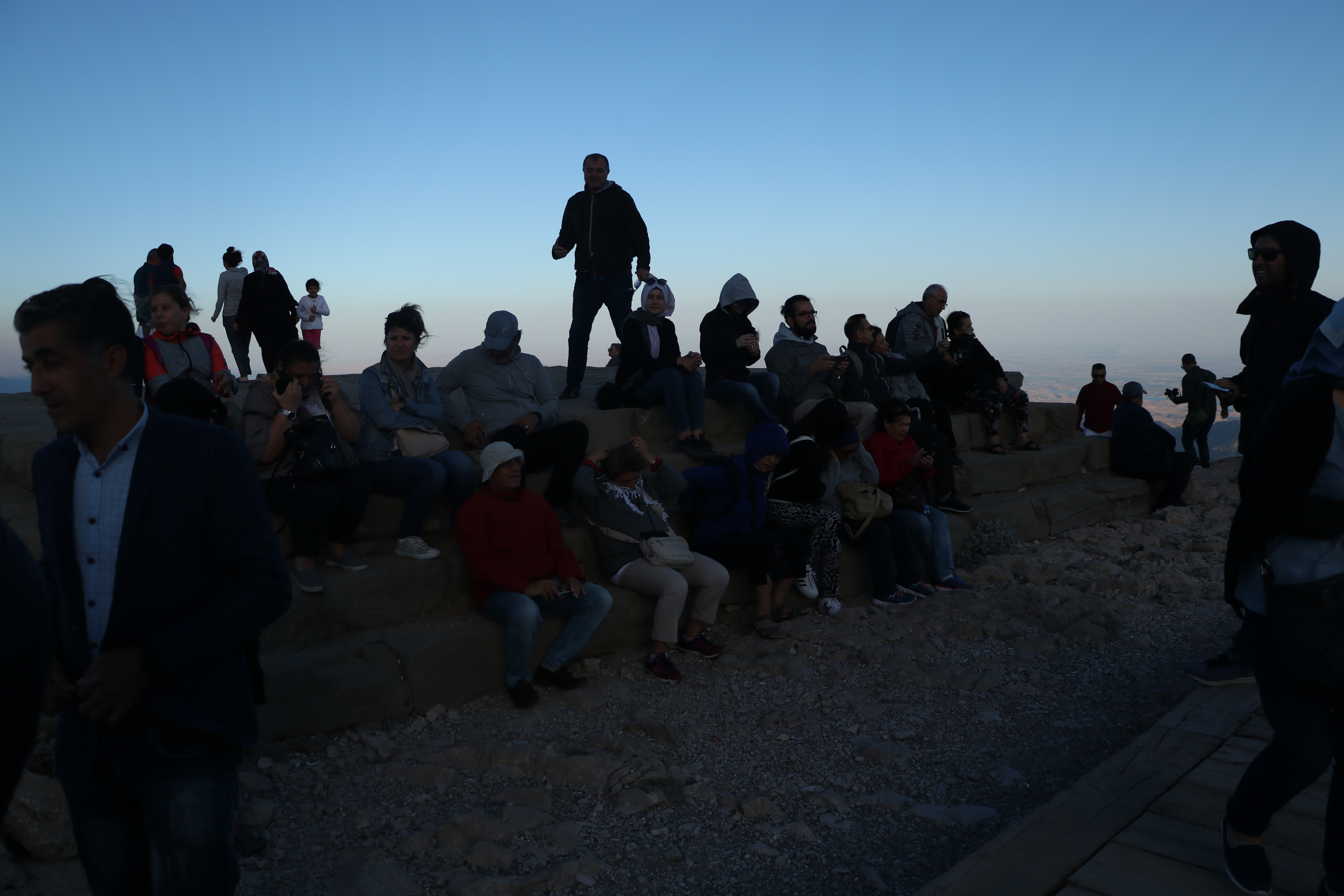 Zirveye yaklaştıkça yol daha da dikleşiyor ve bazı yerlerde merdiven kayboluyor. Zorlu bir tırmanıştan sonra zirveye varanların çoğu hemen fotoğraf çekmeye başlıyor. Türkiye’nin birçok ilinden Nemrut Dağı’nı görmek için tek başına, arkadaşlarıyla, ailesiyle, sevgilisiyle birlikte gelenler haliyle güneşin batışını da izlemeden dağdan inmiyor.