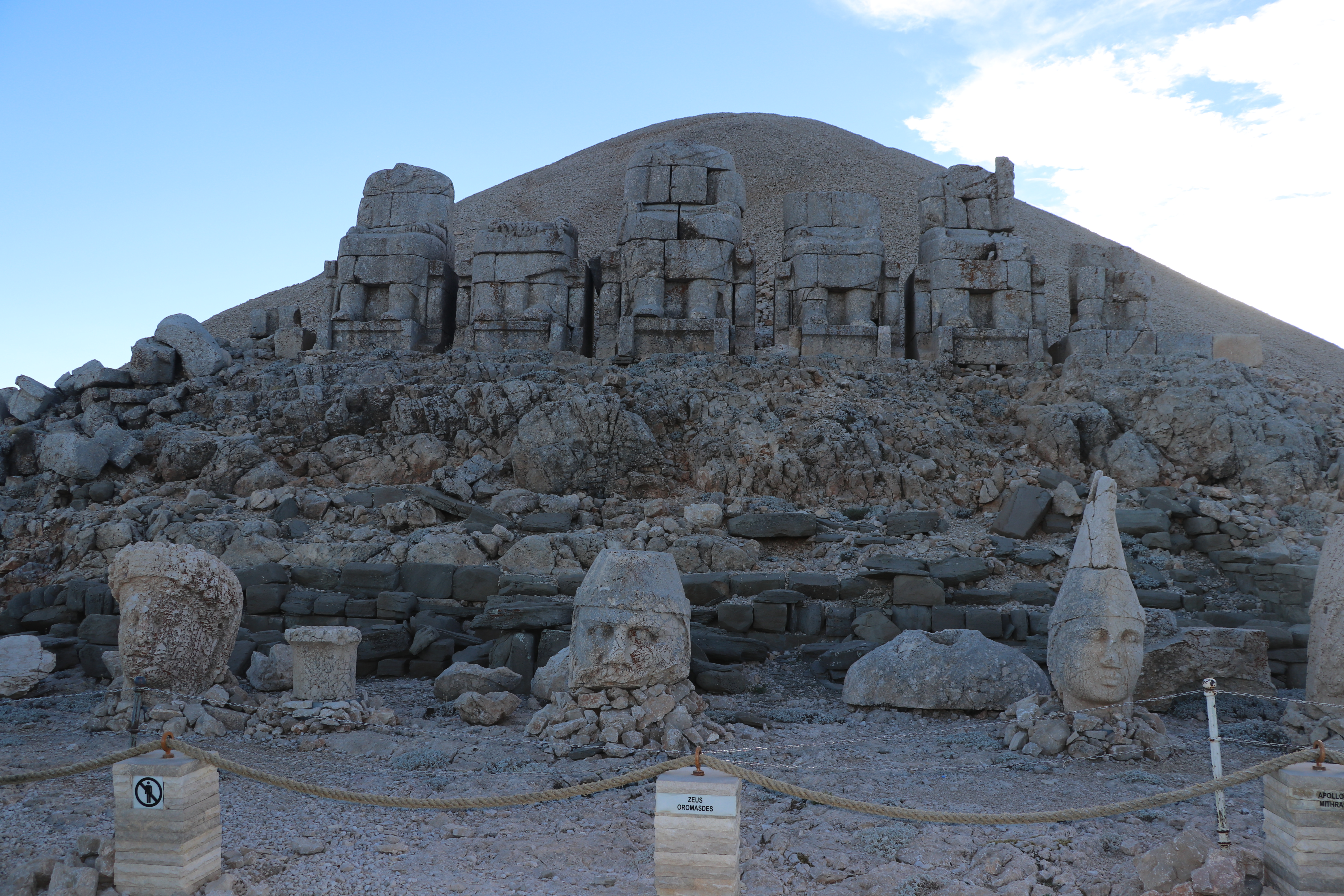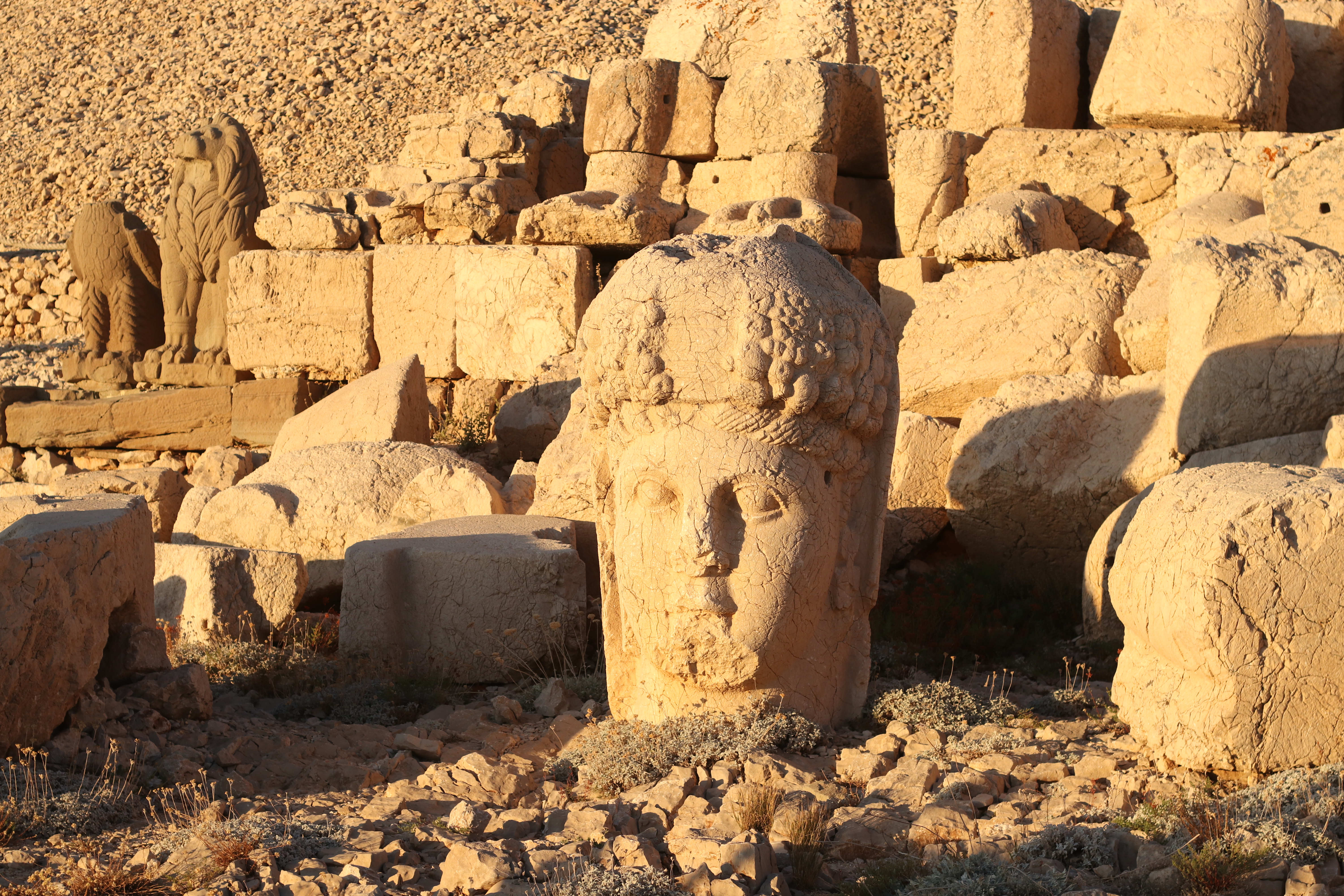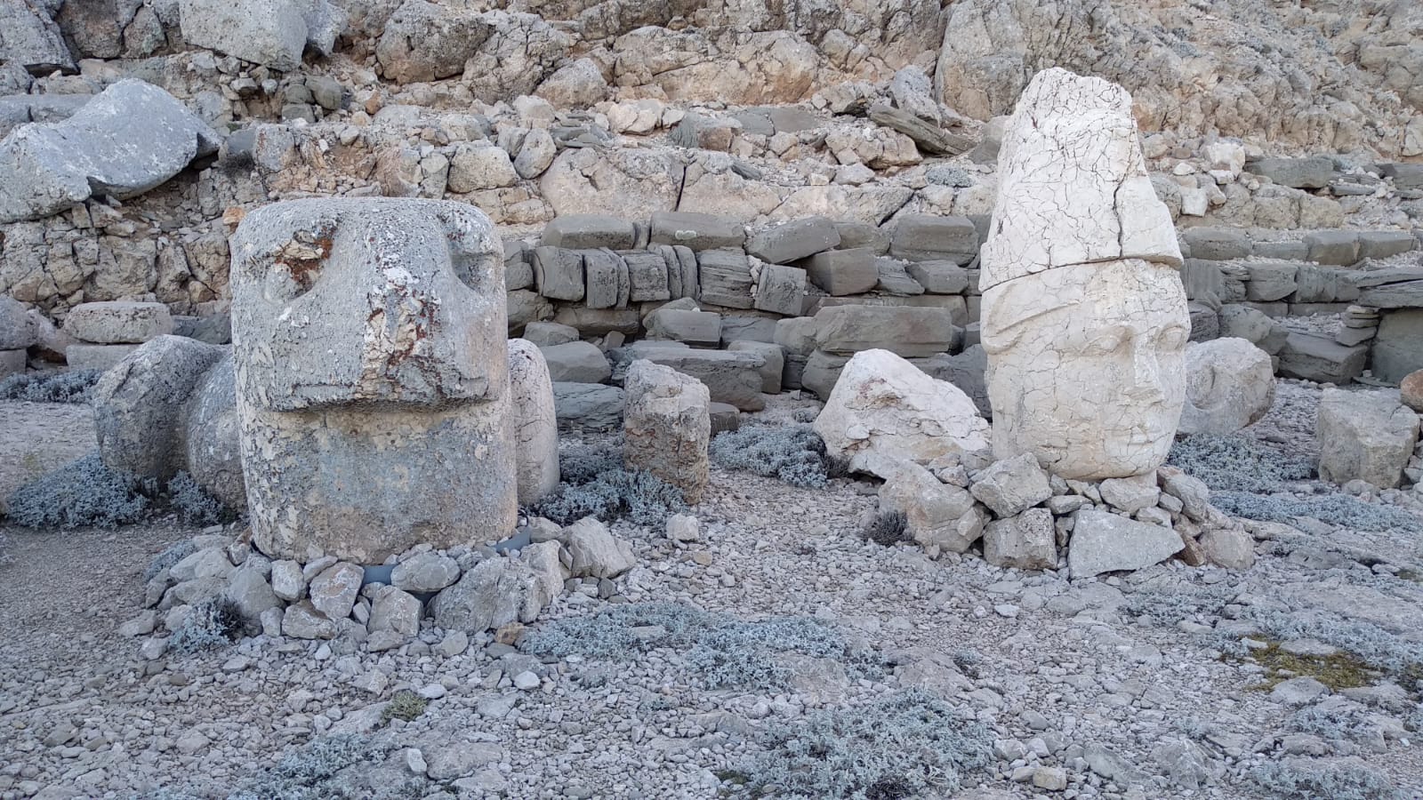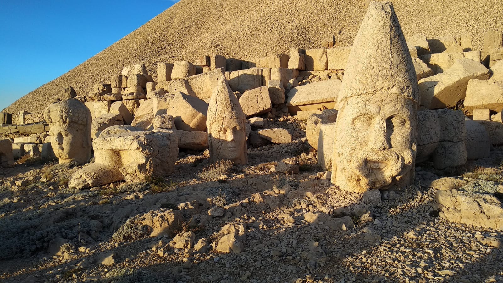 Adıyaman’ın Kahta ilçesinde 2150 metre yükseklikte yer alan Nemrut Dağı, 2 bin yıllık bir kültürel zenginliğe sahip. Milattan önce 1’inci yüzyılda Nemrut Dağı ve çevresinde kurulan Kommagene Krallığı 141 yıl boyunca bu bölgede hüküm sürmüş, milattan sonra 72 yılında da Roma hakimiyetine girmiştir. Nemrut Dağı üzerinde bulunan tarihi eserler Kommagene Krallığı’na aittir. 1881 yılında bölgede yol yapımında çalışan Alman mühendis Karl Sester, eserlerin üzerindeki Grekçe yazıları çözüp bu heykel ve eserlerin Kommagene Krallığı’na ait olduğunu ve kral 1’inci Antiochos’un emriyle yapıldığını keşfetmiştir. Kommagene Kralı I. Antiochos’un tanrılara ve atalarına minnettarlığını göstermek için yaptırdığı mezarı, anıtsal heykelleri ve benzersiz manzarası ile Helenistik Dönemin en görkemli kalıntılarından birisidir. Anıtsal heykeller doğu, batı ve kuzey teraslarına yayılmıştır. Doğu terası kutsal merkezdir ve bu nedenle en önemli heykel ve mimari kalıntılar burada bulunmaktadır. İyi korunmuş durumdaki dev heykeller kireç taşı bloklarından yapılmıştır ve 8-10 metre yüksekliktedir.
