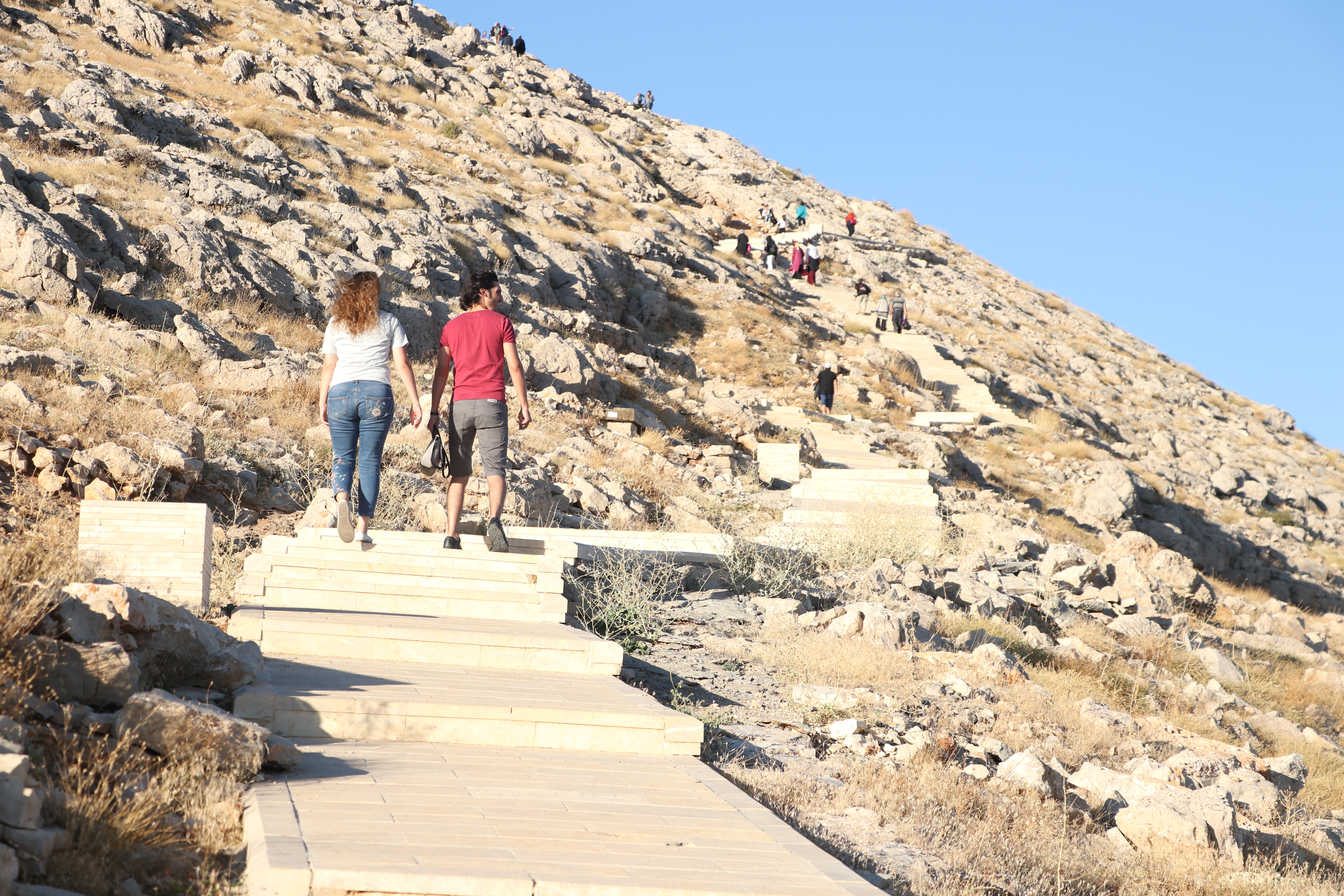 1987 yılında UNESCO Dünya Mirası Listesi’ne alınan Nemrut Dağı, şimdilerde ziyaretçi akınına uğruyor. Gün batımını izlemek için gelen ziyaretçiler önce patika gibi merdivenlerden oluşan bir yoldan dağa tırmanıyor.