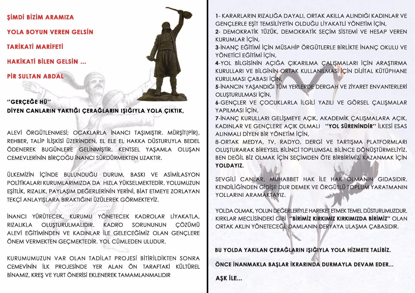Sevgili canlar, muhabbet hak ile hak olmanın gıdasıdır. Kendiliğinden gidişe dur demek ve örgütlü toplum yaratmanın yollarını aramaktayız.
