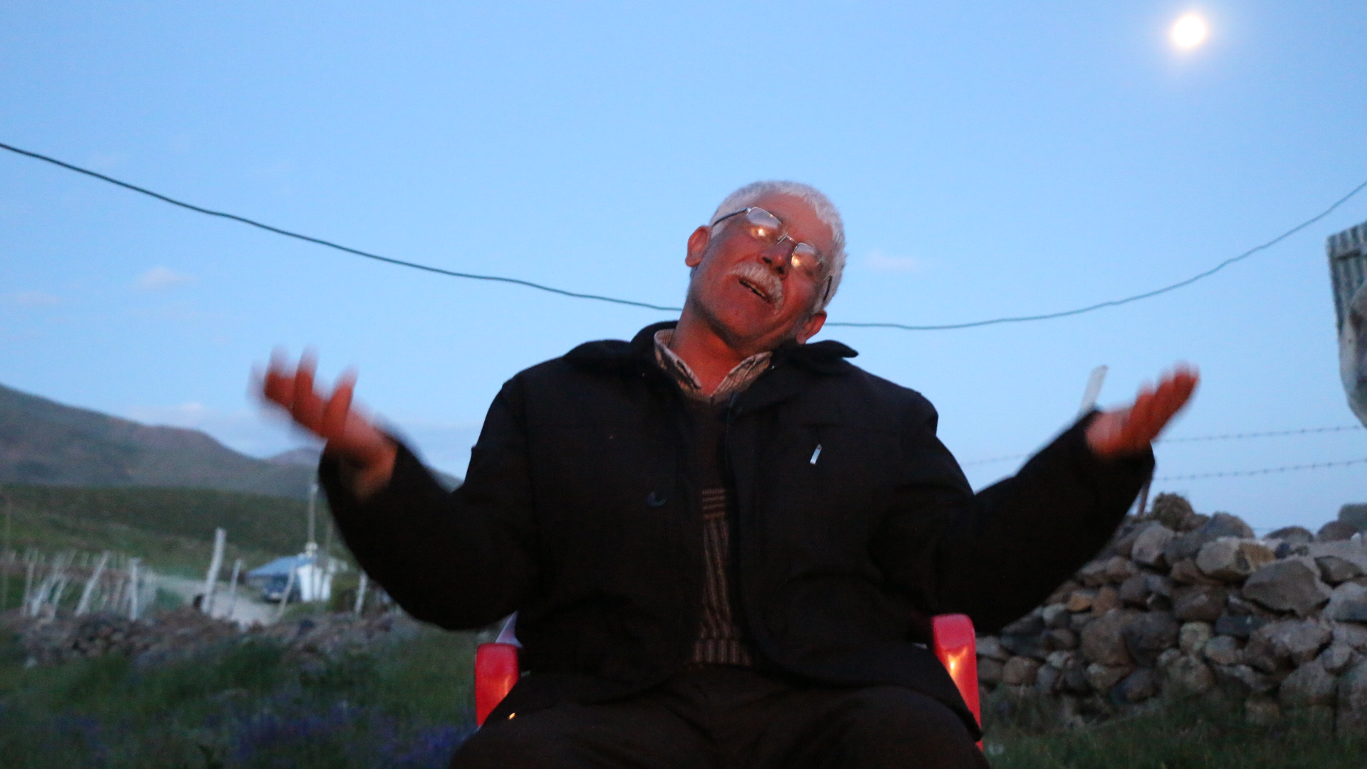 Rojda’nın okuduğu bir bestesini seslendiriyor. Dolunayı arkasına alan Egit Amca, ellerini iki yana açıp başlıyor eserini okumaya. Tüm hüzünlere, kavuşamamış aşklara el açar gibi…