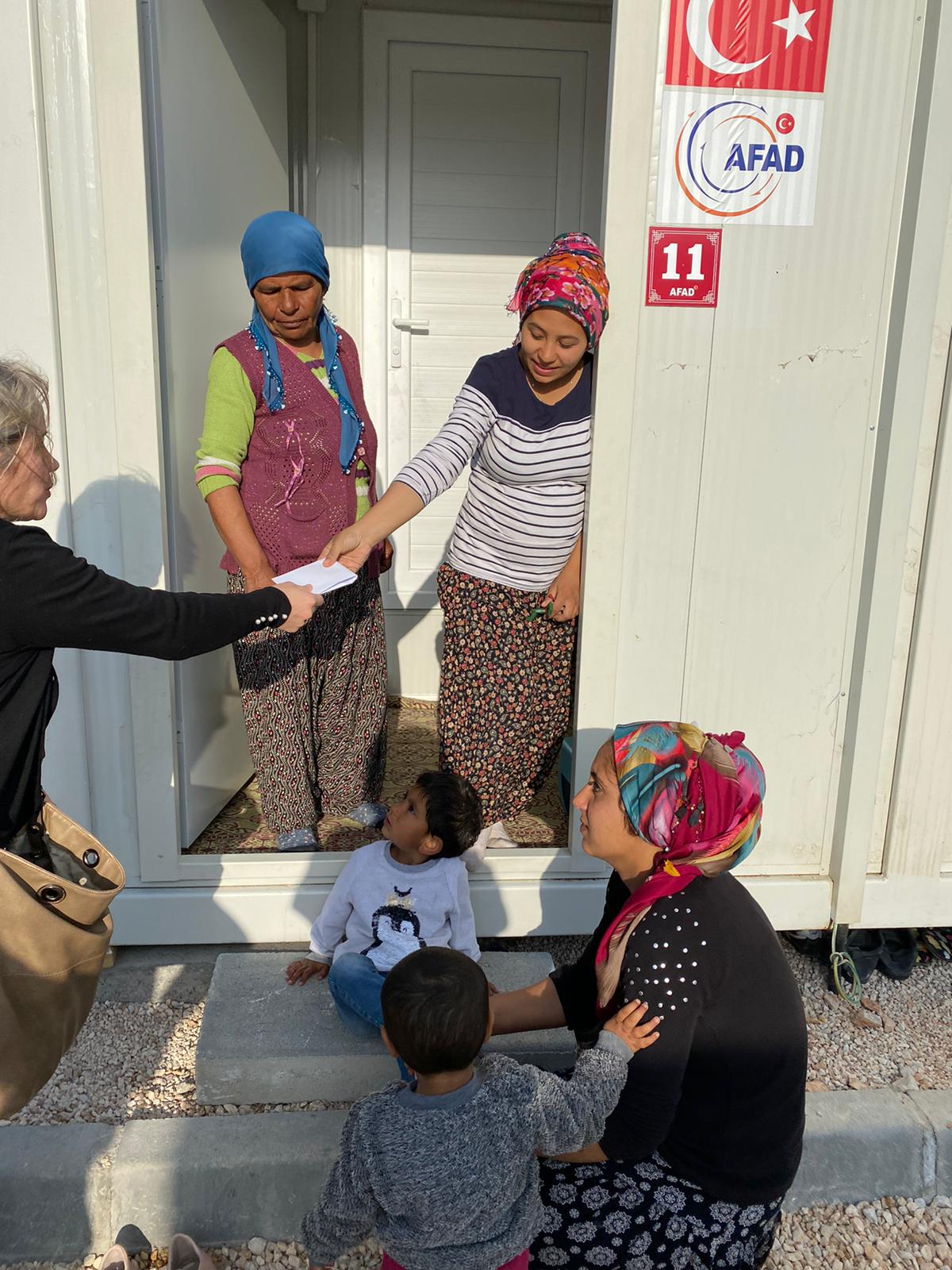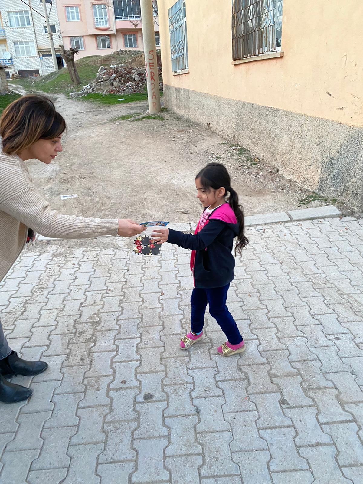 Deprem bölgesinde incelemelerde bulunan heyet, çocuklara hediyeler verdikten sonra Ağuçan Ocağı Sosyal Yardımlaşma ve Kültür Derneği Başkanı Pir İnanç Dolu ile birlikte Xızır lokmalarını depremzede ailelerle paylaştı.
