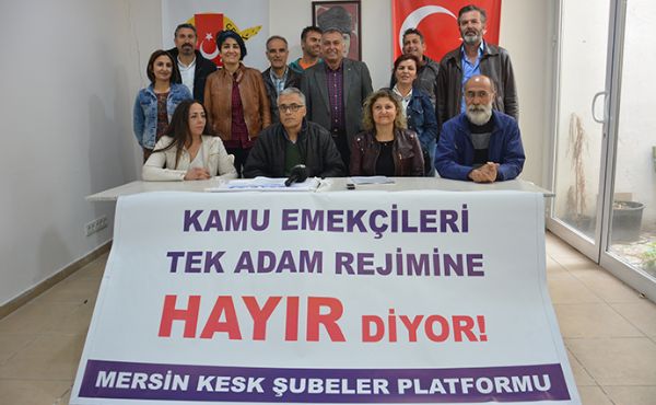 KESK Mersin Şubeler Platformu bileşenleri Mersin Gazeteciler Cemiyeti’nde 16 nisan tarihinde yapılacak referandum ile ilgili basın açıklaması yaptı. Platform adına açıklamayı okuyan KESK Dönem Sözcüsü İmam Özdemir, Cumhurbaşkanlığı sistemi içerikli anayasa değişiklik paketinin Türkiye’nin temel sorunlarına çözüm getirmeyeceğini aksine sorunların daha da büyüyeceğini ifade ederek şunları belirtti;