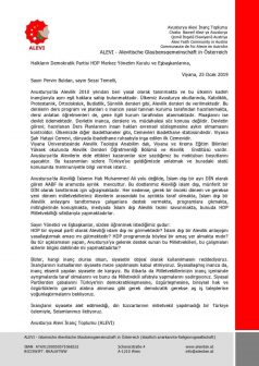 Aleviliği Avusturya’da, “İslam Yasası” kapsamında görülmesini isteyen Avusturya Alevi İnanç Toplumu HDP Genel Merkezi’ne bir mektup yazarak, Aleviliğin özgün bir inanç olarak kabul edilmesini isteyen Avusturya Alevi Birlikleri Federasyonu ile Özen ve Öker’i şikayet etti.