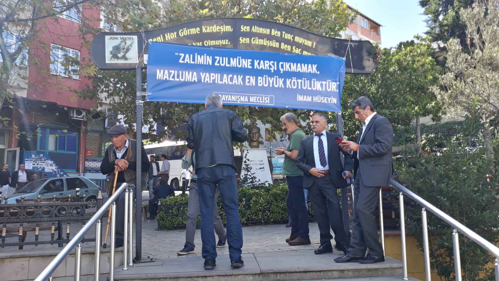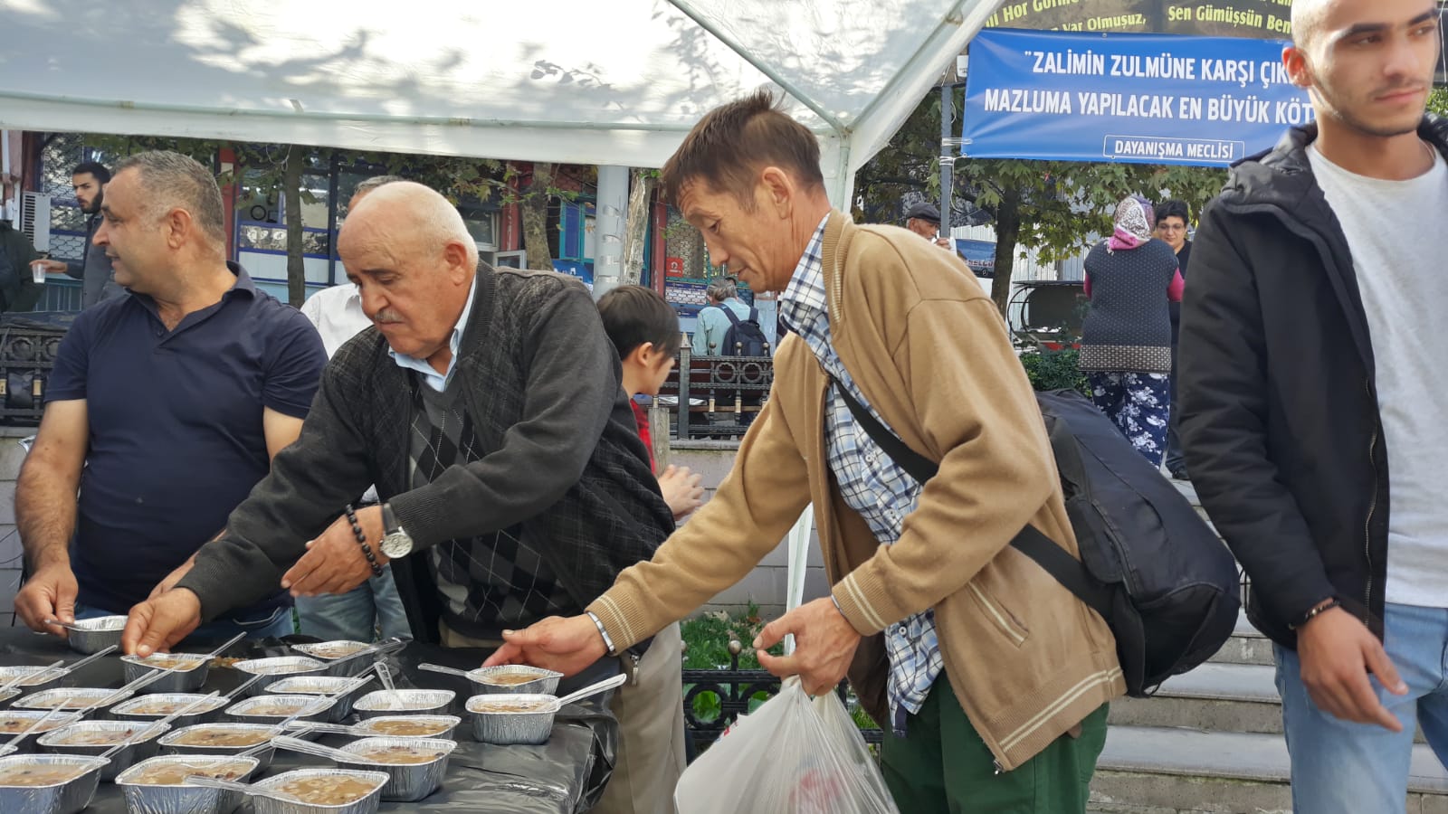 Okmeydanı Dayanışma Meclisi Mehmet Ayvalıtaş Parkı’nda aşure dağıttı. Parkın girişine “Zalimin zulmüne karşı çıkmamak mazluma yapılacak en büyük kötülüktür” yazılı pankart asıldı. Aşureye Okmeydanı halkın da aşure dağıtımına destek verdi.