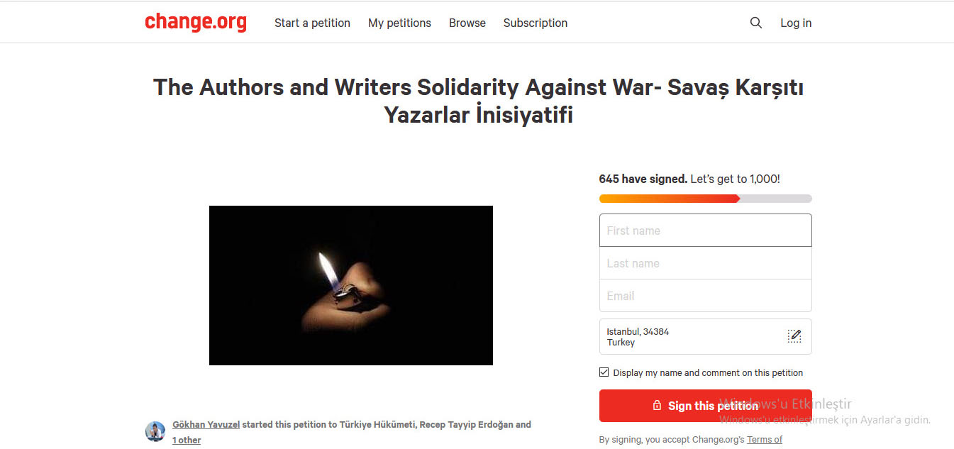 Geçtiğimiz aylar “Savaş Karşıtı Yazarlar İnisiyatifi” adı altında bir imza kampanyası başlatan Gökhan Yavuzel tehdit edildi ve hakkında, yapılan ihbarlar sonucu 3 farklı emniyet müdürlüğünde soruşturma başlatıldı.
